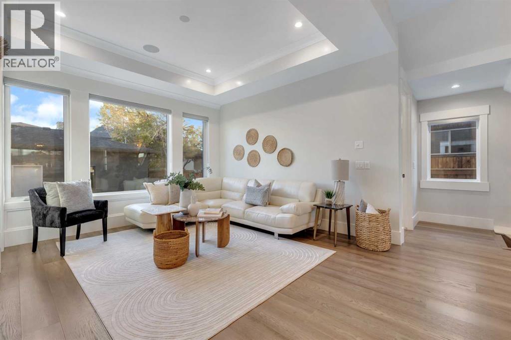 Sophisticated and thoughtful, this modern infill in BANFF TRAIL faces a GREEN SPACE and delivers everyday function wrapped in elevated style. With over 2,700 sq. ft. of living space, four bedrooms, a fully finished basement, and a double garage, it’s a home that balances upscale design with everyday practicality – ideal for busy professionals and growing families alike. Step inside and you’ll feel an immediate sense of light and space. The open main floor was made for both living and entertaining, blending clean lines with warm finishes that make the home feel grounded and welcoming. The front foyer opens into a bright front dining area that sits perfectly under a designer light fixture with wide windows that fill the room with sunlight. At the center, the kitchen takes the spotlight with its oversized island, full-height cabinetry, quartz countertops, and gas range. Every detail feels intentional – from the sleek subway backsplash to the deep drawers for storage. It’s a kitchen that works as hard as it looks good. Beyond the island, the living area brings everyone together with a feature fireplace framed by built-in shelving and oversized windows overlooking the backyard, with a high tray ceiling with built-in LED lighting for added ambience. The atmosphere is equal parts polished and comfortable, creating the kind of space where kids can play while the adults unwind. The rear mudroom adds real-life practicality with custom built-ins, hooks, and exterior access to the backyard and garage – keeping everything organized and out of sight. A discreet powder room sits off the hallway, rounding out the main floor. Upstairs, the layout keeps family life in mind. The primary suite spans the front of the home, creating a private retreat with soft light, a walk-in closet, and a spa-like ensuite featuring a freestanding soaker tub, dual vanities, and a glass-enclosed shower. Two additional bedrooms are bright and generous in size, each with good closet space. The upstairs la undry room makes day-to-day living simple, with lots of storage options and laundry sink. Downstairs extends the home’s versatility even further. A large rec room with built-in media centre and full wet bar offers the perfect setup for movie nights, weekend entertaining, or a play space that can evolve as kids grow. There’s also a fourth bedroom and full bathroom, ideal for guests, teenagers, or a quiet home office. Set in the heart of Banff Trail, this home sits in one of Calgary’s most connected inner-city communities. Families love the quick walk to schools, green spaces, and community parks, while professionals appreciate the easy access to the UofC, McMahon Stadium, Foothills Medical Centre, and SAIT. The Banff Trail LRT station is just minutes away, offering a quick train ride to downtown or the university. The neighbourhood’s quiet, tree-lined streets and established charm create a sense of calm right in the city, perfect for those who want space for family life without giving up convenience. (id:6769)