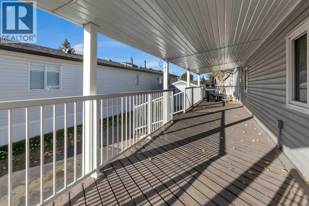 Welcome to this great mobile home in Watergrove, the premiere 45+ mobile home park in Calgary, boasting a fabulous clubhouse, outdoor pool, sauna, recreation room/party room, pool tables,  and enough activities to keep you busy every single day! This 3 bed, 2 bath home with central A/C has been lovingly cared for and it shows.  The spacious kitchen has a large breakfast bar, a generous amount of cabinetry, stainless appliances, a large dining area, and a skylight to bring in the sunshine.  The living room easily accommodates a variety of furniture options and is accented by a vaulted beamed ceiling.  This open floorplan offers two bedrooms and a full bath at this end of the home, with the large primary bedroom at the opposite end.  The primary bedroom has a 4 pce ensuite and a large walk-in closet. This home has had many upgrades throughout the years as follows:  2016 hot water tank, new chimney replacement, 2017 new siding, skirting, asphalt application on the driveway and relevelled, 2018 Removal of Poly B to Pex waterlines, and a brick pathway to the shed. 2019 roof upgrade (repair and replace new shingles as required), skylights, deck expansion with roof addition.  This home has modern touches with wide-plank laminate flooring, a spacious foyer,  and a large living room window to bring in natural light,  giving a bright, spacious feel. Located in a great location, with lovely curb appeal, close to the greenspace, and in an amenity filled community – this home is just waiting for its new owner. Nearby Crowfoot Centre provides every amenity you can imagine. Immediate possession available.  Lot fee of $860 includes water/sewer, garbage pickup and recycling.   Lease and pet approval is required. (id:6769)