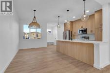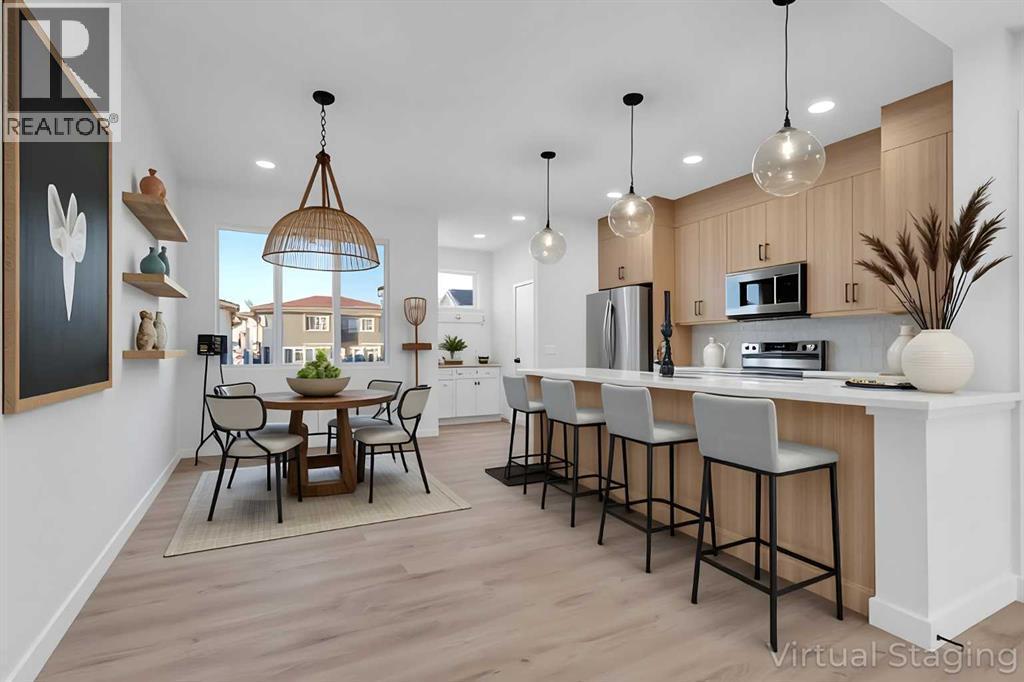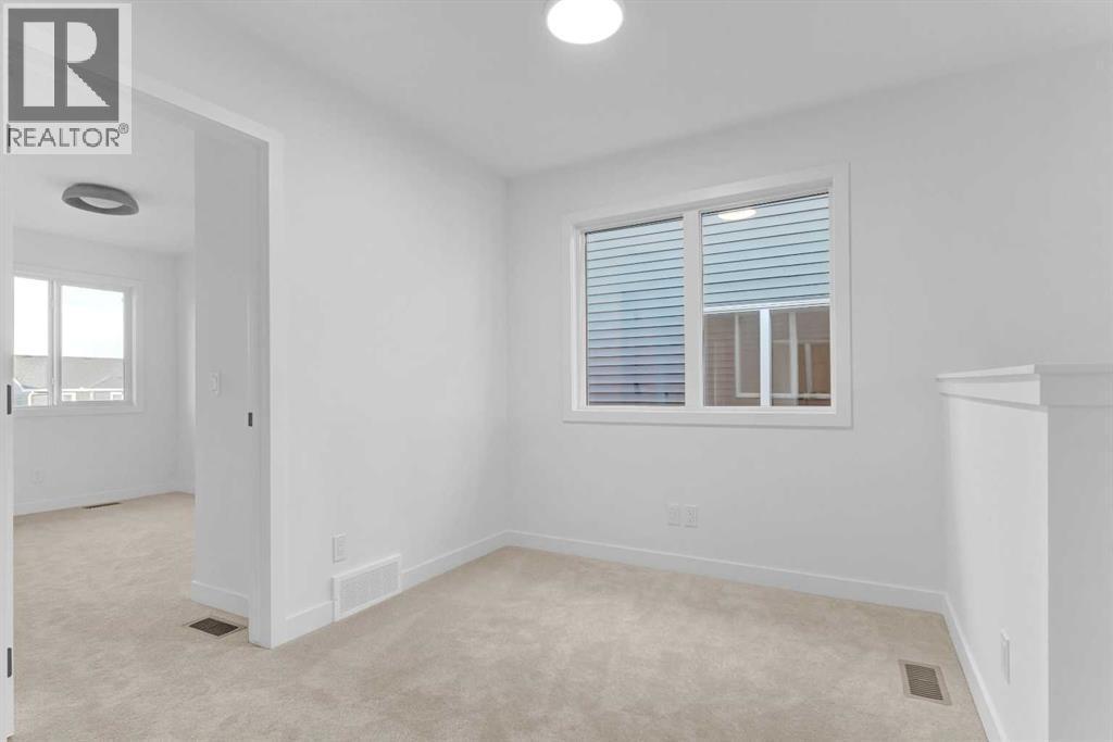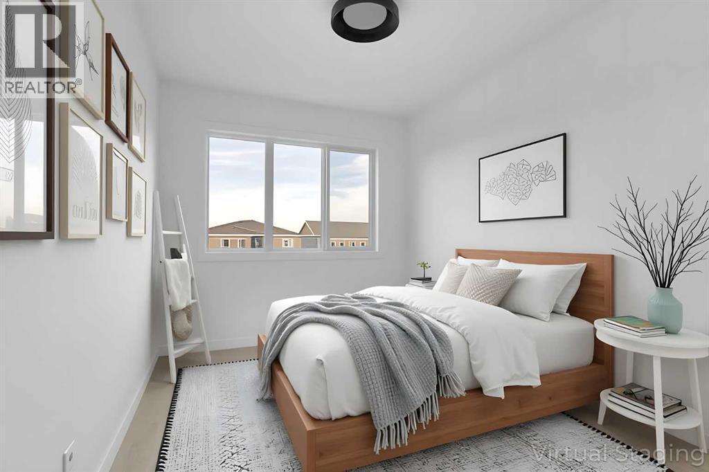 No Condo Fee | Side Entrance to Basement | End Unit | Double Garage .Welcome to this beautifully designed end unit townhome with separate side entrance to the basement, in the dynamic and growing community of Cobblestone in Airdrie!This stunning unit in a modern tri-plex perfectly blends style, comfort, and functionality—ideal for families, first-time buyers, or down sizers seeking a spacious, low-maintenance lifestyle.Featuring 3 bedrooms, 2.5 bathrooms, and 1,520 sq. ft. of thoughtfully designed living space, this brand-new home offers an open-concept main floor with 9’ ceilings and seamless flow between the kitchen, dining, and living areas—perfect for everyday living and entertaining.The contemporary kitchen is sure to impress with quartz countertops, a central island, and sleek cabinetry, providing ample prep space and casual dining options.Upstairs, the primary suite serves as a peaceful retreat with a private ensuite and generous closet space. Two additional bedrooms are ideal for kids, guests, or a home office, while the convenient upper-level laundry adds everyday practicality.Enjoy the benefits of a detached double garage (to be built by Builder)and paved back lane access.Located in the sought-after Cobblestone community, you’ll love the proximity to schools, parks, shopping, and major routes—making it easy to commute to Calgary or escape to the mountains on weekends.Don’t miss your chance to own this stylish, move-in-ready home in one of Airdrie’s exciting new neighbourhood. Book your private showing today! (id:6769)
