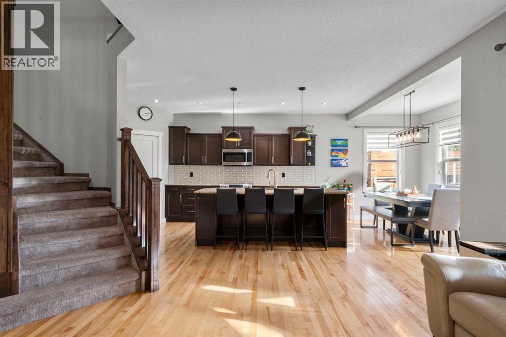 Welcome to 2581 Coopers Circle SW in the vibrant sought after community of Coopers Crossing. This well appointed home boasts over 3000 sq ft in total development. With abundant large windows, central air conditioning for those hot days and gleaming hardwood floors this home is oozing with warmth and functionality right from the moment you enter into the open concept floor plan. The main floor consists of a mud room that you will love with individual storage space, a separate office with built-ins, 2 pc bathroom and then come on into your dream Chefs kitchen featuring expansive granite countertops, a coffee corner, copious amounts of cabinets, pantry and a huge island with extra seating space for entertaining or just your family. All this open to your large dining area and a spacious living room that has floor to ceiling windows. Upstairs boasts a bonus room for your family to spend time together around the beautiful gas fireplace, a 4pc bathroom, separate laundry room and 3 good sized bedrooms including the luxurious Primary bedroom large enough for a king bed and furniture complete with a walk-in closet and a spa like 4pc ensuite. There is plenty of additional living space with the fully finished lower level. Here you will find another 4pc bathroom, a den which can possibly be a future bedroom, a work out area, and a huge recreation/family room, a cozy 3 way gas fireplace and the best part yet is a Murphy Bed on the wall for those guests that stay over! A highlight of this property is the covered deck for you to enjoy year around with yet another gas fireplace! There is even more...no need to mow the back lawn with this artificial turf that looks so real, a gazebo to put your hot tub under, concrete pad for extra entertaining space and a single car garage that can be used to park a car or maybe even for your gym. No need to worry about parking as there is also a attached oversized garage. This is a Beautiful Home that you will not want to miss out on! (id:6769)