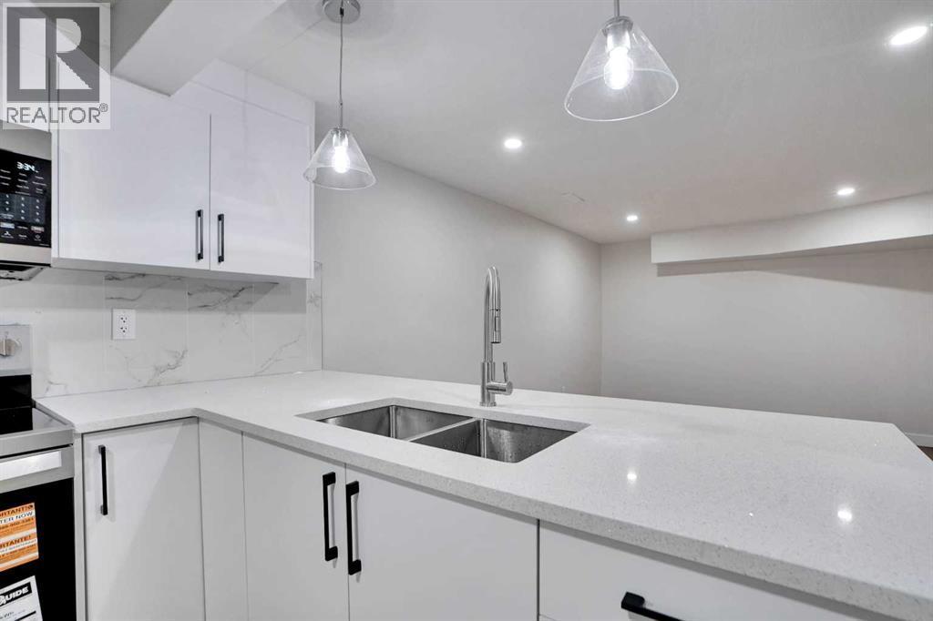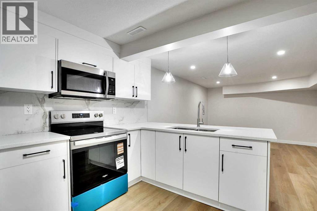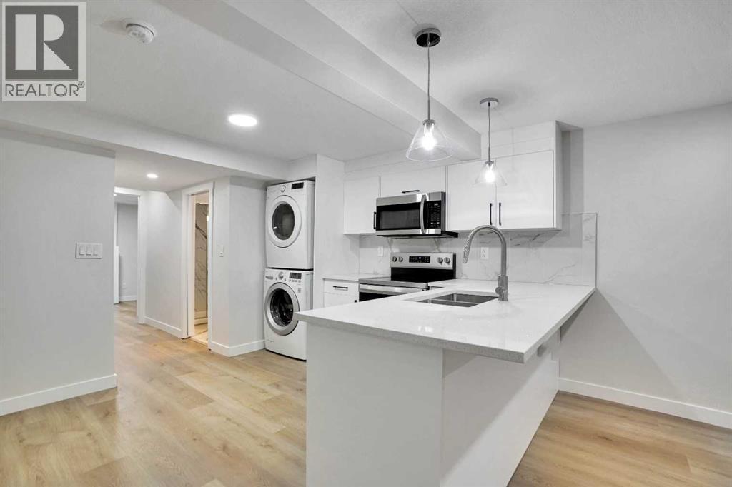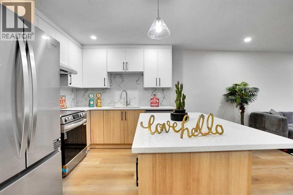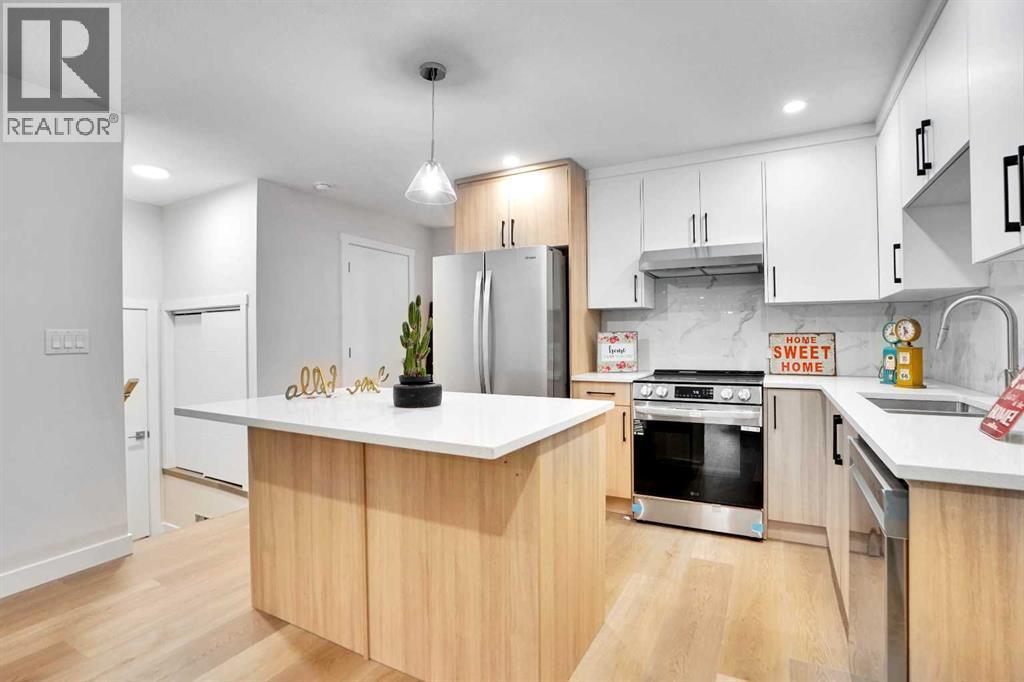 Welcome to this beautifully renovated bi-level half duplex in the desirable community of Queensland SE, Calgary! Perfectly located close to major roads, Fish Creek Provincial Park, schools, and playgrounds, this home offers over 952 SQFT of thoughtfully designed living space, featuring 5 bedrooms, 2 bathrooms, and a huge backyard.Step inside to a bright and spacious foyer with a convenient closet. The stunning modern kitchen boasts a central island, stainless steel appliances, and an open layout overlooking the dining and living areas. Large windows in the living room flood the space with natural light, creating a warm and inviting atmosphere. A stylish 4-piece bathroom, in-suite laundry with stacked washer/dryer, and three generously sized bedrooms complete the main level.The fully finished basement (illegal suite) with a separate entrance, offering two bedrooms, a full bathroom, and a comfortable recreation area—perfect for extended family or guests.Enjoy the outdoors in your fully fenced backyard, ideal for summer barbecues, gardening, or simply relaxing in the sun.Don’t miss your chance to make this move-in ready home yours—book your showing today! (id:6769)