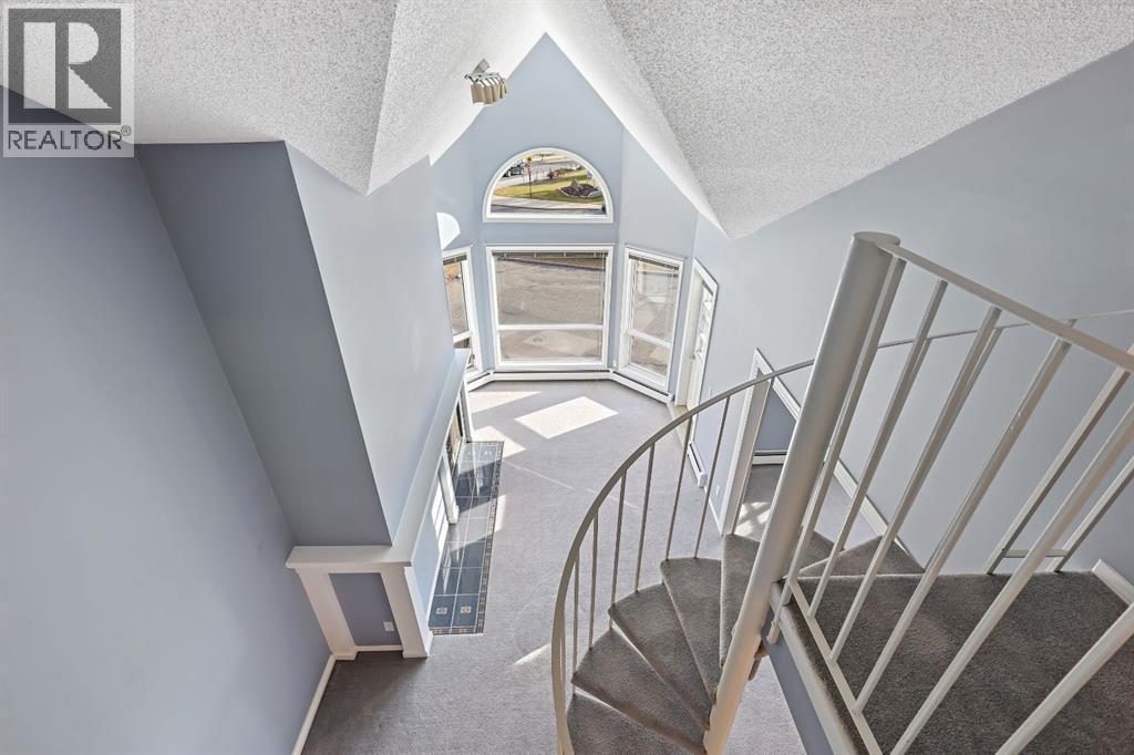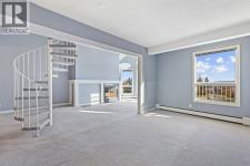 Welcome to #309, 102 Centre Court SW in Okotoks a perfect blend of comfort, space, and boutique condo living. This rarely available 2 bedroom, 2 bathroom, two-storey unit offers 1,354 sq. ft. of thoughtfully designed space in a quiet, 45+ age restricted community.Step inside to an open and airy layout, highlighted by large windows that fill the living room with natural light and frame stunning views of Okotoks and the Rocky Mountains to the southwest a picturesque backdrop to everyday life.To the right, a spacious dining area is ideal for family dinners and entertaining. To the left, a functional kitchen offers ample storage and workspace. The striking spiral staircase leads to the loft, which serves as the primary bedroom and features a private balcony, perfect for morning coffee or evening sunsets.Both bedrooms are generous in size, and the layout provides privacy and flexibility. The unit includes a titled, heated underground parking stall, keeping your vehicle secure year-round.The building offers fiber optic internet, is peaceful, well-maintained, and designed for low-maintenance, mature living.If you’ve been waiting for a condo with space, views, character, and convenience this is the one. Come experience the best of Okotoks living. (id:6769)
