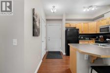 Welcome to this inviting 1-bedroom, 1-bathroom main floor condo perfectly located in the highly sought-after community of Aspen Woods. This thoughtfully designed unit combines comfort, functionality, and tranquility — all within minutes of urban convenience.Step inside to discover 9-foot ceilings and an open-concept layout that feels bright and spacious. The kitchen offers abundant cabinetry, a peninsula island with breakfast bar, and plenty of prep space — ideal for everyday living or entertaining. The adjoining living and dining area features laminate flooring and large sliding patio doors that open to your private patio overlooking lush green space and mature trees, creating a peaceful, park-like retreat.The large bedroom enjoys views of the trees, while the 4-piece bathroom includes tile flooring and a full-sized washer and dryer for ultimate convenience. A spacious front storage closet offers incredible versatility — perfect for seasonal gear, or even a cozy den area.Additional highlights include heated titled underground parking, ample outdoor visitor parking, and a quiet, well-maintained building in one of Calgary’s most desirable west-end neighbourhoods.Enjoy close proximity to Aspen Landing Shopping Centre, top-rated schools, Westside Recreation Centre, Aspen Woods Lake and walking paths the LRT, and quick access to 17th Avenue SW, Sarcee Trail, and Stoney Trail — making commuting and errands effortless. (id:6769)