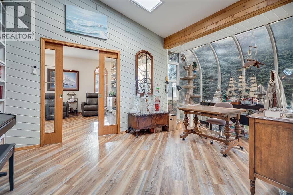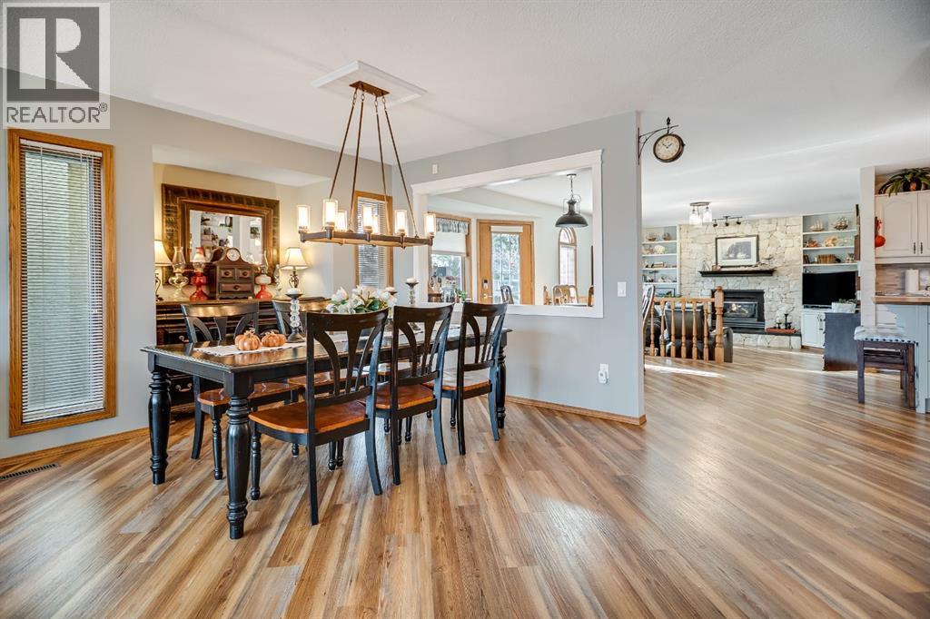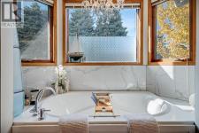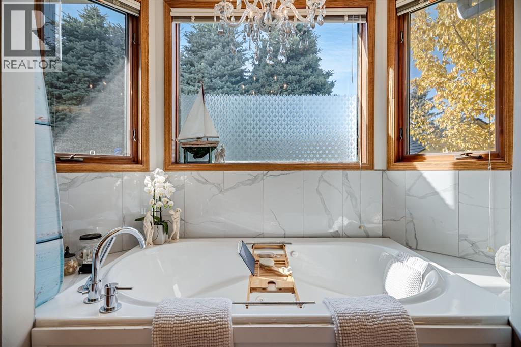 Experience the finest in living with this exceptional, fully finished 2367 sq ft bungalow across the street from Emerson Lake. Immaculately maintained and recently upgraded, this home boasts high-quality finishes, spacious, bright rooms, and a unique, welcoming layout you'll love.The main floor is an entertainer's delight, offering an open-concept living area, a formal dining room, and a cozy family room with a gas fireplace. It features a fantastic sunroom with a curved wall of windows and electric-shade-equipped skylights, plus a functional kitchen with a nook, updated appliances, and plenty of storage.The luxurious master suite is a true retreat with two exits, a walk-in closet, and a newly renovated 6-piece ensuite featuring a spacious glass shower and soaker tub. Two additional bedrooms (one an ideal office) and a dedicated laundry room complete the main level, all updated with new vinyl plank flooring, updated fixtures, and modern hardware.The fully finished basement expands your living space with a huge games room (pool table included!), a bedroom, an office, and a massive workshop/storage area with the comfort of in-floor heating.Outside, you'll find a private, west-facing backyard oasis. Surrounded by a wall of mature spruce trees, the patio offers incredible privacy. It features three water features, landscaping, fruit trees, and a timed irrigation system. Practical extras include a super-sized double attached garage, air conditioning (new furnace/AC), two new hot water tanks, and a concrete tile roof. (id:6769)