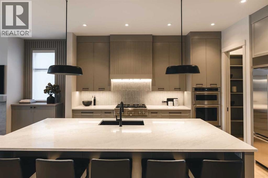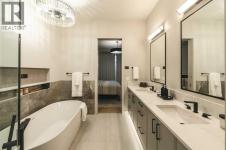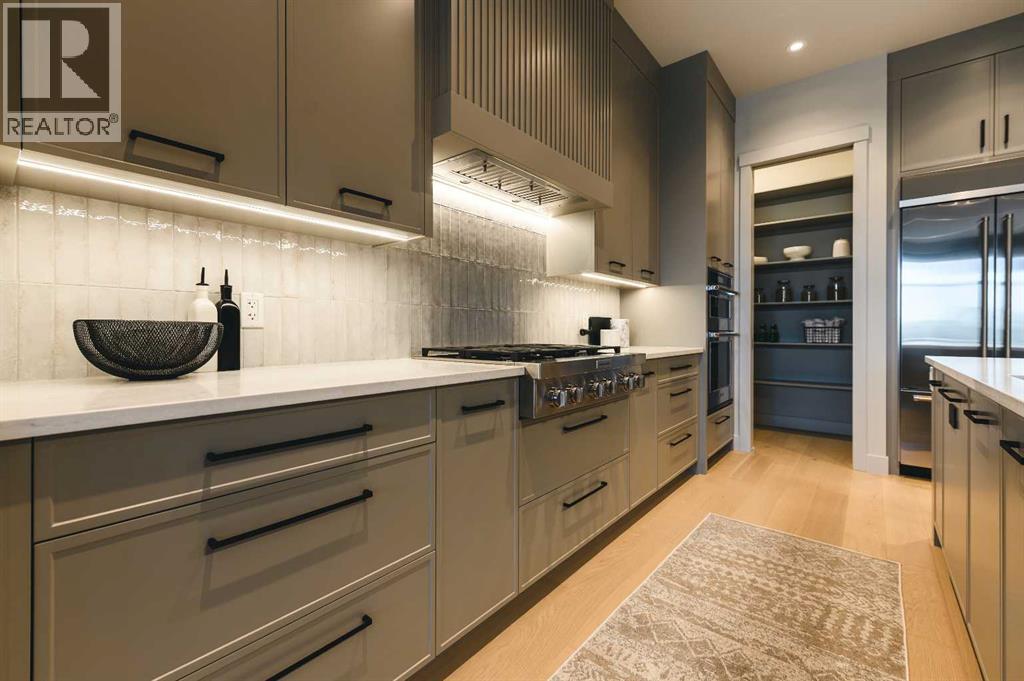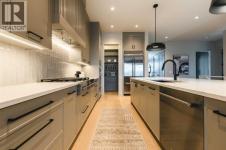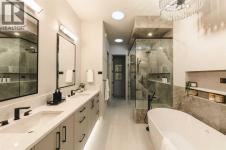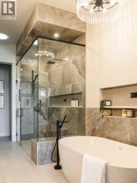Experience over 3,200 sq. ft. of luxury living in this executive villa featuring 3 bedrooms, 2.5 bathrooms, a 3-stop elevator, golf simulator room, and an oversized double garage. The open-concept main floor showcases engineered wide-plank hardwood, custom tile, 10’ ceilings, and a spacious great room with large sliding doors leading to a covered rear deck and private fenced yard. The chef-inspired kitchen boasts all KitchenAid appliances, including a six-burner gas cooktop, custom hood fan, refrigerator/freezer, dishwasher, and built-in oven with convection microwave. A home office with beam detailing adds style and functionality. The primary suite offers a spa-inspired 5-piece ensuite with heated floors, freestanding soaker tub, oversized shower, and a custom walk-in closet. The fully finished basement features a large rec room, two bedrooms, full bath, and a dedicated golf simulator space. Additional highlights include Tilt and turn triple glazed windows Solar panels as a standard, EV charger ready, a high-efficiency furnace, heat pump, air conditioning, and radiant in-floor heating. Discover refined living at 733 Serenity Bend—schedule your private showing today! (id:6769)
