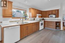Over 2800 sq.ft. of developed living space in this exceptionally private, vaulted, walkout, villa style home in an amazing location! You will love the light airy feel of vaulted ceilings in the spacious main floor living, dining, kitchen, den/office, and bedroom areas. This surprisingly bright end unit walkout bungalow has sunlight spilling in all day from skylights plus large windows on 3 sides - south, west and east. Freshly painted in neutral designer colours throughout (Oct 2025) with vinyl plank flooring updates accenting hardwood floors in large functional living area with gas fireplace, dining and den areas. Enjoy sunrise coffees and cool evenings on the peaceful secluded and extended deck surrounded by birdsong in mature flowering trees. A big main level den or sitting room connected to a fresh white kitchen with a south facing box window which adds light to an already bright space. Generous walkout level family room with oversize windows and sliding doors to a private patio. Also features a large bedroom with adjacent full bath, plus 2 flex rooms and loads of storage. New HE furnace & HW tank, 2019. (NOTE: All the “Poly B” pipes have been replaced). Super convenient location - imagine walking literally just 1 block to Sunterra West Market Square, the L.R.T., coffee shops, pubs, and restaurants. Also close to natural ravine walking paths, dog parks & bike paths. Easy access to major commuting routes including Sarcee trail and the SW Ring Road. Click on 3D for interactive floorplans. Just move in, relax, and enjoy your easy care, lock and leave lifestyle! (id:6769)