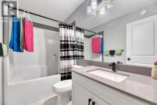 WELCOME to 15 Creekside Grove SW! This fabulous family home is just under 2000sq ft with a double front garage and is situated on a landscaped and fenced conventional lot (NOT zero lot line) with a paved back lane for extra privacy and access! Complete with an open front den/office space, convenient walk through pantry to the kitchen with tasteful and inviting interior selections and an excellent layout, all it's missing is YOU! There's lots of room to host on the main floor as the flow is perfection with loads of natural light and an electric fireplace for added ambiance! The half bath has a tiled feature wall and the kitchen has stylish picket backsplash and beautiful quartz counters. All appliances will be included (not as currently shown but they will be swapped for BLACK STAINLESS from a previous showhome {never used} and will be installed with serial numbers provided).  Upstairs has a large loft style bonus room, great for play plus a spacious and convenient upper laundry room complete with washer and dryer. Primary bedroom has a 5 piece ensuite (dual sinks, soaker tub, large tile and glass shower). All bedrooms are great sizes and have WALK IN CLOSETS!  Enjoy the ease and comforts of a newer home without the wait of having to finish the yard, fence or window coverings. Sirocco in Pine Creek is a quiet, elevated community, complete with a ridge overlooking the Sirocco Golf Club - very close for the golf lovers!  It's laced with pathways connecting homes to four parks and a storm pond. While still close to conveniences of shopping, roadways and transit, Sirocco is built within a peaceful and natural environment. (id:6769)