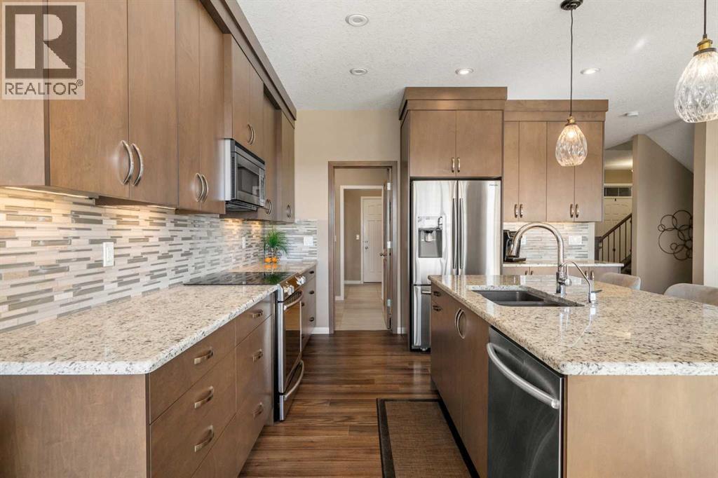 Welcome to 35 Cranarch Terrace SE, an EXECUTIVE RESIDENCE located in the highly sought-after community of CRANSTON. Perfectly positioned along CRANSTON’S RIDGE, this stunning home captures BREATHTAKING, UNOBSTRUCTED VIEWS of the BOW RIVER VALLEY, FISH CREEK PARK, and the ROCKY MOUNTAINS. With DIRECT ACCESS TO WALKING AND BIKING TRAILS, it provides the perfect balance of NATURAL SERENITY AND URBAN CONVENIENCE.Step inside to discover a BRIGHT, OPEN-CONCEPT FLOOR PLAN designed to emphasize SPACE, LIGHT, AND COMFORT. The main level features SOARING CEILINGS and EXPANSIVE WINDOWS that frame the panoramic views. The warm and inviting LIVING ROOM centers around a GAS FIREPLACE, creating a cozy yet sophisticated atmosphere.The CHEF-INSPIRED KITCHEN combines functionality with modern elegance. It includes GRANITE COUNTERTOPS, RICH CABINETRY, a LARGE CENTRAL ISLAND, STAINLESS STEEL APPLIANCES, and a SPACIOUS WALK-THROUGH PANTRY featuring a BUILT-IN DOG DOOR that connects conveniently to the MUDROOM AND GARAGE. A dedicated MAIN FLOOR OFFICE provides a quiet workspace, while the DINING AREA opens onto a LARGE, LOW-MAINTENANCE DECK—perfect for morning coffee or watching evening sunsets.Upstairs, the PRIMARY SUITE offers a true retreat with a SPA-LIKE ENSUITE featuring DUAL SINKS, a WALK-IN CLOSET WITH BUILT-IN SHELVING, a MI-BERRY SPA HOT TUB, and a SEPARATE SHOWER and HEATED TILES. Two additional SPACIOUS BEDROOMS, a FULL BATHROOM, and a VERSATILE BONUS ROOM provide ample space for family and guests. The UPPER-LEVEL LAUNDRY includes CUSTOM CABINETRY and a BUILT-IN DRYING RACK for everyday convenience.The BACKYARD is designed for YEAR-ROUND ENJOYMENT with PROFESSIONAL LANDSCAPING, an EXTRA-LARGE COMPOSITE DECK WITH GLASS PRIVACY PANELS, ARTIFICIAL TURF, and a PRIVATE PUTTING GREEN, offering a LOW-MAINTENANCE, FUN OUTDOOR LIFESTYLE.Additional highlights include an OVERSIZED HEATED DOUBLE ATTACHED GARAGE equipped with GLADIATOR CABINETS, a WORKBENCH WITH MATCHING FRIDGE,  and CENTRAL AIR CONDITIONING throughout the home with a water softener system.Situated on a QUIET, FAMILY-FRIENDLY STREET, this property offers easy access to SCHOOLS, SHOPPING, RESTAURANTS, the SOUTH HEALTH CAMPUS HOSPITAL, and major roadways. With its SPECTACULAR VIEWS, ELEGANT FINISHES, and THOUGHTFUL DESIGN, 35 Cranarch Terrace SE is more than just a home—it’s a LIFESTYLE. Schedule your private showing today. (id:6769)