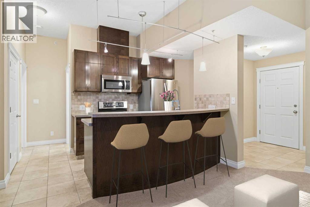 Welcome to this spacious and stylish condominium in the desirable community of Spruce Cliff — where comfort, convenience, and lifestyle meet. Inside, you’ll immediately notice the soaring 10-foot ceilings and oversized living room, complete with a cozy corner fireplace that creates the perfect space for relaxing or entertaining. The chef-inspired kitchen impresses with its large eat-up island, stainless steel appliances, and ample cabinetry for all your storage needs. The primary bedroom is a true retreat — bright, generously sized, and featuring a walk-in closet plus direct access to the 4-piece bathroom. You’ll also appreciate the in-unit laundry room with extra storage and a large patio with a gas line, ideal for summer barbecues or morning coffee.This home also includes underground parking and a separate storage locker for added convenience. Residents enjoy access to exceptional amenities, including a massive fitness centre, party rooms, guest suites, and more — all within a well-managed, sought-after complex close to transit, parks, and the Shaganappi golf course. (id:6769)