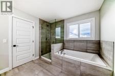 Welcome to The Maverick II by Prominent Homes – a beautifully upgraded 4-BEDROOM WALKOUT home in the community of Heartland. Thoughtfully designed with over $25,000 in upgrades, this 2,182 sq. ft. home offers the perfect blend of functionality, style, and comfort.Step into the inviting open-concept main level featuring 9-ft ceilings and a stunning chef’s kitchen complete with ceiling-height cabinetry, quartz countertops, and premium built-in Whirlpool appliances – perfect for entertaining or everyday living. The spacious dining area flows effortlessly to a massive 10’ x 24’ south-facing vinyl deck, ideal for soaking in sunny views and backyard serenity.Upstairs, you'll find a generous bonus room, FOUR well-appointed bedrooms, and a luxurious 5-piece ensuite with a glass-enclosed shower and deep soaker tub in the primary suite. Two of the secondary bedrooms also include walk-in closets for added storage and convenience.Additional highlights include stunning 8' doors on the main floor, a built-in mudroom bench with coat hooks, 9-ft ceilings in the unfinished walkout basement, and direct access to nearby parks, pathways, and playgrounds – making this home as family-friendly as it is elegant. Heartland is a wonderful community that boasts small town charm while keeping you close to all amenities and a quick commute to the mountains or the city. READY FOR IMMEDIATE POSSESSION – don’t miss your chance to own this stunning move-in ready home. (id:6769)