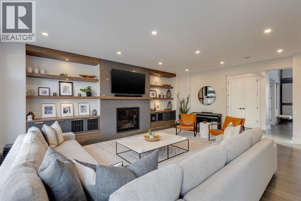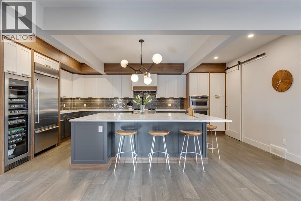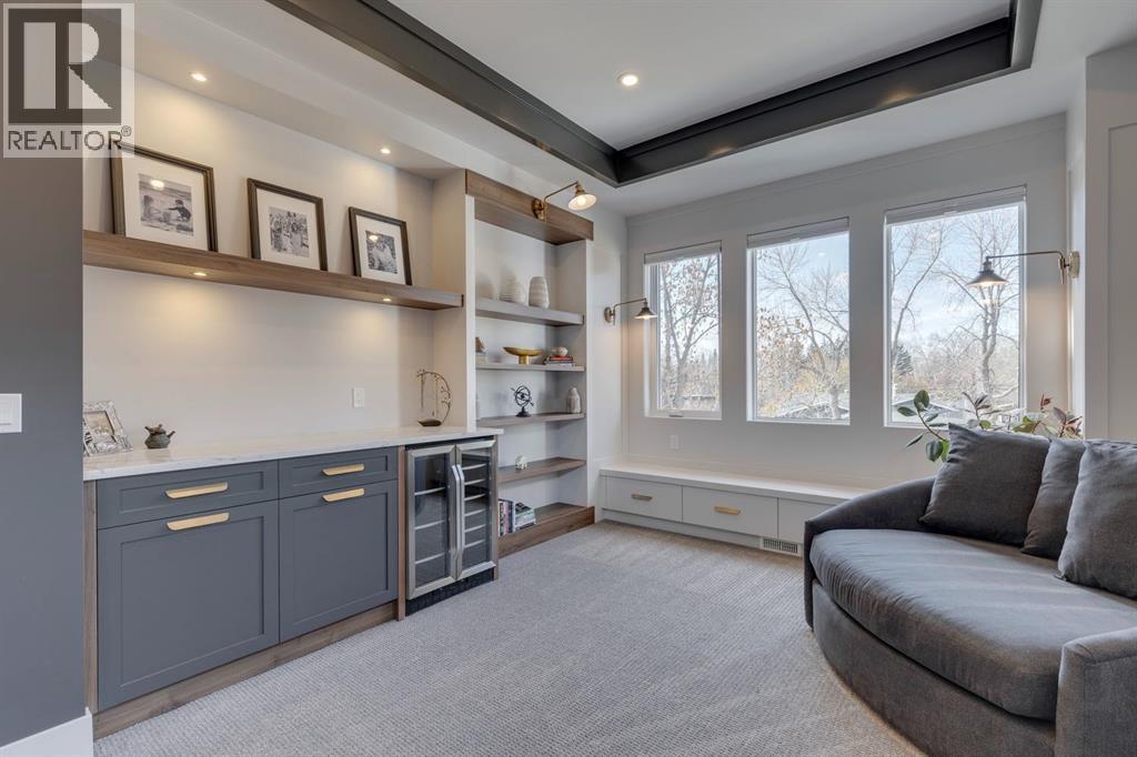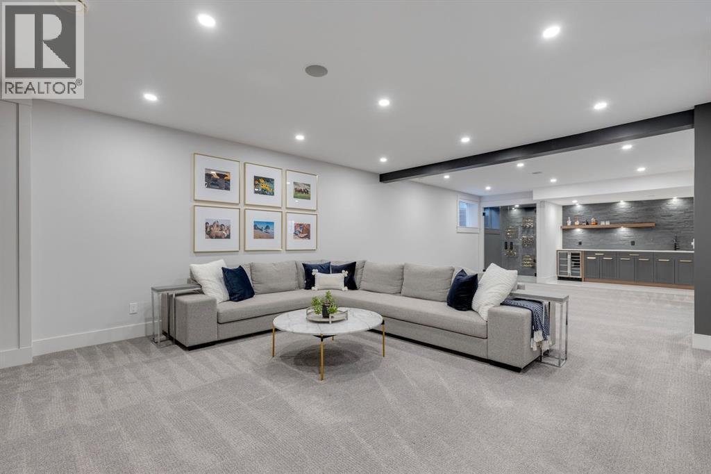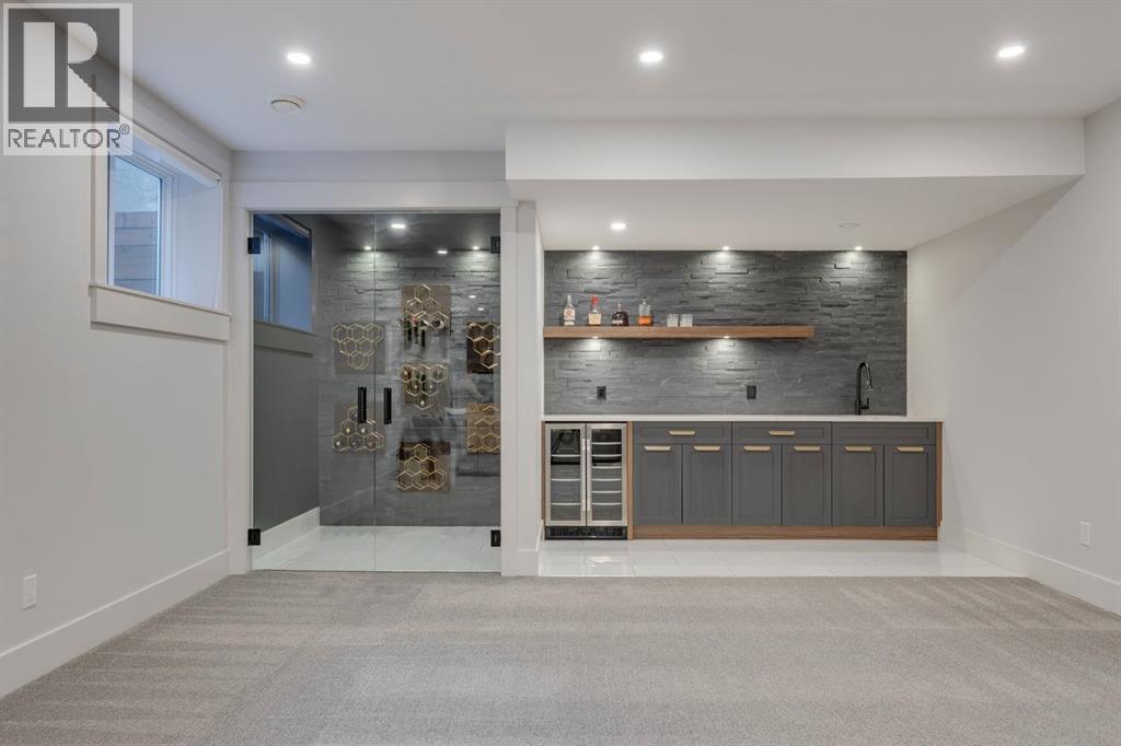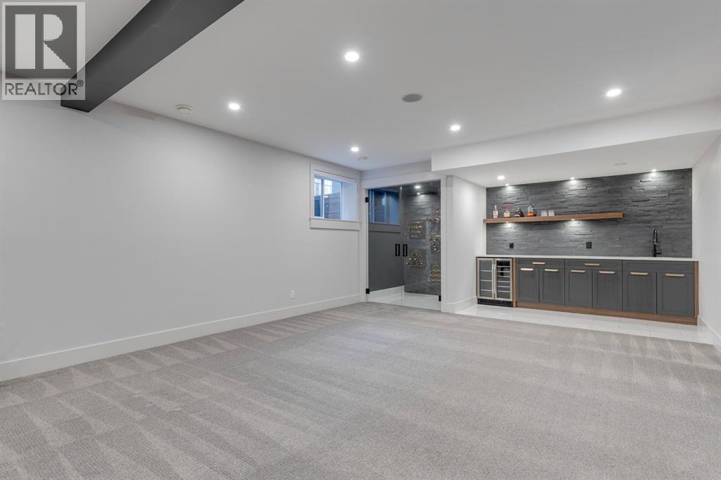 Discover modern elegance and refined living in this custom built architectural showpiece. Designed for families and entertainers alike, every element of this residence blends cutting edge technology, timeless craftsmanship, and a warm, luxurious ambiance that instantly feels like home. From the moment you arrive, you’ll be captivated by the exquisite curb appeal and inviting front porch where you can unwind with a glass of wine and wave to passing neighbours. Step inside to a warm, contemporary interior accented with rich walnut finishes throughout. A culinary enthusiasts dream kitchen is a true centrepiece, featuring an expansive eat-up island, a walk-in pantry, custom cabinetry, built-in appliances, and a massive island with a Zomodo prep sink that transforms seamlessly for entertaining. Designed to impress and inspire, this kitchen effortlessly blends functionality with sophistication, making it ideal for both intimate family meals and lavish entertaining. The open concept main floor invites connection, whether you’re hosting elegant dinner parties or cozy family nights by the fireplace. Extend your living outdoors to a spectacular, multi-tiered deck and beautifully landscaped rear yard, ideal for summer gatherings or peaceful evenings under the stars. Upstairs, the primary suite redefines luxury with a gas fireplace, coffee station with beverage fridge, and large windows framing tranquil views. The lavish ensuite pampers with a large skylight, heated floors, deep soaker tub, steam shower with body sprays, double vanity, and even a heated towel rack for ultimate comfort. Two additional spacious bedrooms, a full bath, and a large laundry room complete the upper level. The lower level presents plush carpets and exceptional versatility with two additional bedrooms (or home gym), a family room and games area, a gorgeous wet bar, and a spacious wine cellar for the wine collecting enthusiast. Located on a quiet, tree-lined street just steps from both public and catholi c schools, Confederation Park and the golf course, and moments from the Calgary Winter Club, this home offers an unmatched lifestyle balancing recreation, relaxation, and urban convenience. A true smart home built with integrated voice-controlled Lutron lighting, Nest thermostats, Ring Pro security cameras, and smart irrigation, allowing you to manage your environment from anywhere. Even the triple car heated garage features belt-drive smart openers for ease and convenience. Built with uncompromising quality and integrity, every element of this home showcases expert craftsmanship, premium materials, and enduring design crafted for families who value beauty, function, and comfort. Make your dreams a reality in a home built to create memories for generations. (id:6769)