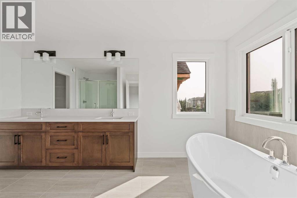 Move-In Ready - Immediate Possession Available! The stunning Columbia by Brookfield Residential offers nearly 2,500 square feet of beautifully designed living space, perfectly blending style, function, and comfort. Ideally situated backing onto green space with a south-facing backyard for optimal sunshine, this home has the perfect lot in Silver Spruce! Thoughtfully planned for modern living, this home features an open-concept main floor centered around an impressive gourmet kitchen with an oversized island, elegant two-tone cabinetry with natural wood upper cabinets and timeless white lower cabinets. The kitchen is complete with white quartz countertops, a sleek stacked subway tile backsplash, and a premium suite of built-in stainless-steel appliances including a gas cooktop, chimney hood fan, wall oven, and microwave. The main level provides generous space for entertaining with a bright, open living area and a central dining space that connects seamlessly to the kitchen. A central gas fireplace anchors the main living space with a wall of south-facing windows allowing natural light to pour through the space. A convenient rear office/flex room offers a quiet retreat overlooking the backyard -perfect for a children's play area or work-from-home space. Additional highlights include a walk-through pantry, a mudroom off the garage, a walk-in front closet, and a 2-piece powder room. Natural wood and iron spindle railings lead to the upper level with a thoughtful design that includes a central bonus room that provides separation and privacy between the primary suite and secondary bedrooms. The luxurious primary retreat features a massive walk-in closet and a spa-inspired 5-piece ensuite complete with dual sinks, a walk-in tiled shower, a deep soaker tub with south-facing windows, and a private water closet. Two additional bedrooms, including one with a vaulted ceiling, a spacious main bathroom, and a large laundry room with ample workspace complete the upper level. The l ower level, with 9-foot foundation walls and rough-ins for a future bathroom, is ready for your personal touch - whether you envision a home gym and / or recreation area, there is plenty of space for a bedroom, bathroom and living area! Perfectly situated in the desirable new community of Silver Spruce, this home backs onto a tranquil green space and is just steps from scenic pathways and a playground, while remaining only minutes from major amenities. The south-facing lot will provide optimal natural light both inside and out all year long. Purchase with peace of mind - builder warranty + Alberta New Home Warranty are included with this brand new home. (id:6769)