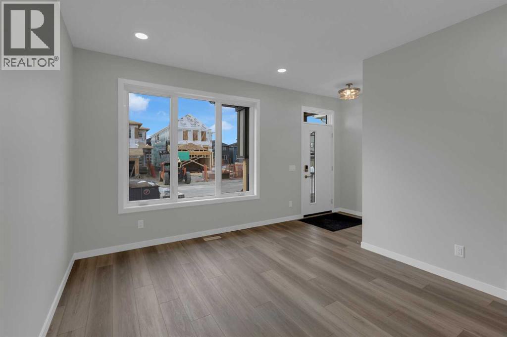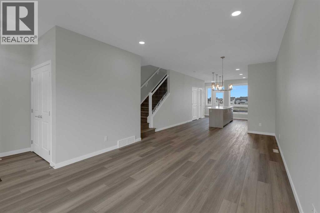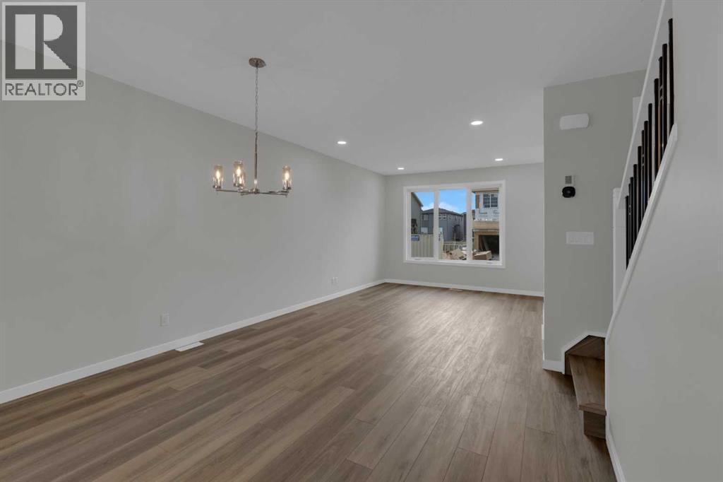 Move into your BRAND NEW home for Christmas! This gorgeous half duplex—the Wren by Excel Homes—is loaded w/upgrades, high end finishings & ready for quick possession. Perfectly situated in Airdries COBBLESTONE CREEK, residents can find sanctuary in Cobblestone's network of parks, paths & recreational amenities - with direct access & pathway connections to amazing Chinook Winds Regional Park & across the street from Airdries new rec Centre - tennis, pickleball & basketball courts - so many options to say active & socialize! Nearby schools have your covered from K to 9. The WREN showcases a contemporary open-concept main floor, ideal for entertaining and everyday living. Poured concrete walk ways & front porch will provide for lasting curb appeal. The chef-inspired kitchen, located at the rear of the home, overlooks the backyard and provides gorgeous, neutral, ceiling height cabinetry, drawers, and a full pantry. Upstairs, a striking black metal railing leads to a cozy central bonus room with vaulted ceilings, separating two generous secondary bedrooms from the private primary suite, which features a full ensuite and a spacious walk-in closet. All bathrooms have stone countertops! The upper floor also includes a convenient laundry & and family bath. This home includes a SIDE ENTRANCE to the basement, offers 9' ceilings, is drywalled and the electrical is also done. The utilities are nicely tucked at the rear of the home for easy development & more useable floor space. This home comes with a 20 x 20 CONCRETE parking pad, gravel to side yard & sod to front yard. There is also a gas line to the bbq at the rear. With over 35 years of experience, more than 15,000 homes built, and 75 awards for design and industry excellence, Excel Homes continues to deliver quality, innovation, and peace of mind—making the Wren a truly smart choice for your next move. (id:6769)