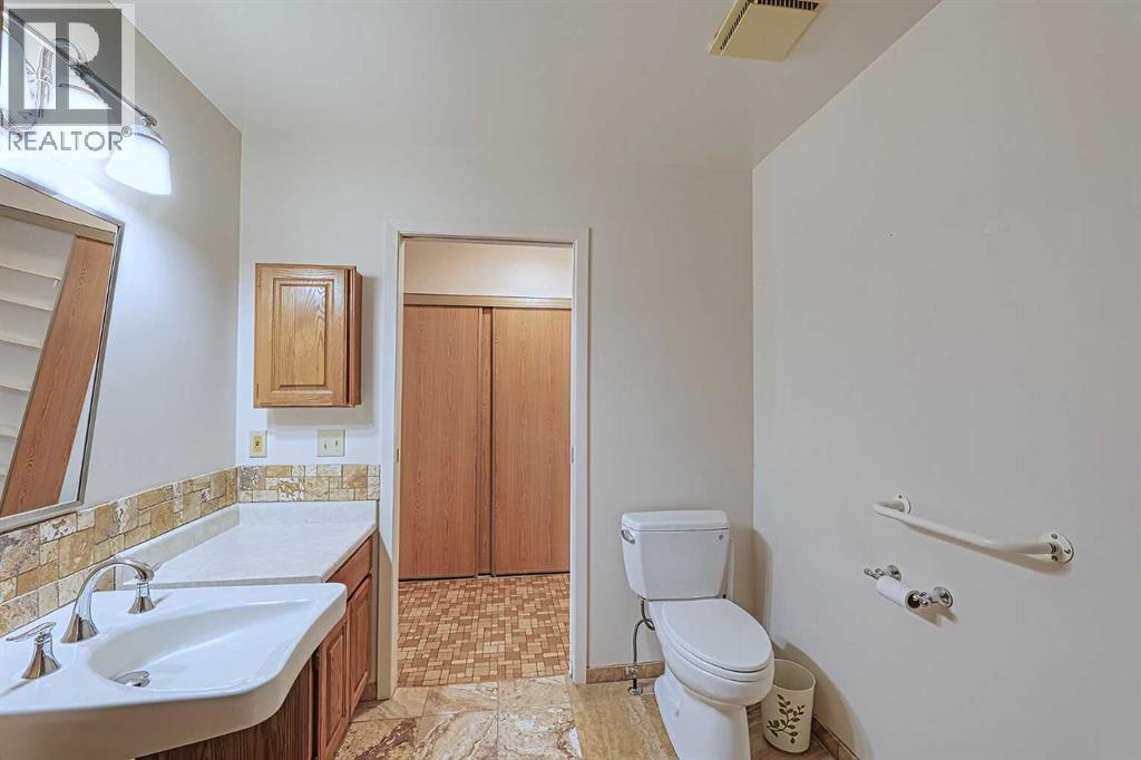 FABULOUS bungalow with double attached garage located on a QUIET STREET in an established neighborhood that backs onto a PATHWAY that leads to GREENSPACES, PLAYGROUND & is within a short distance to SCHOOLS, the RECREATION CENTER & more. Consistent with the mature neighborhood, this home also has matured trees/plants/shrubs, and a PRIVATE YARD with a covered back deck for you to enjoy. As you enter the front door you will find the living room that has large windows that give fantastic natural light and a place to visit and relax as you watch the “happenings” outside. The spacious kitchen, dining and family room that has a gas fireplace is perfect for meals/conversations and entertaining. The large, covered back deck is great for gatherings or to just take in the peaceful privacy as you listen to the birds sing. In the wide hallways there is storage shelving with sliding doors and main floor laundry. The primary bedroom, the second bedroom or office with a murphy bed, bathroom and laundry finish the main floor. A great feature in the home is most of it has pocket doors. BASEMENT is approx 90% finished with needing to put a small amount of drywall in parts of downstairs, you will have a huge family/recreation room, bedroom, bathroom, and tons of storage space. This home also has the added value of the AuqaStop BasementGutter Waterproofing System. Whether you are a young family starting home ownership, someone wanting to upsize/downsize or need wheelchair accessibility, this home is for you. (id:6769)