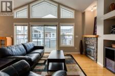 OPEN HOUSE Tuesday OCTOBER 28 from 3 to 5 PM. Looking for LOW MAINTENANCE living close to amenities in NW Calgary? Practical and appealing, this townhome is ideal for first time home buyers or those wanting to downsize. With 2 bedrooms and 2 baths on ONE LEVEL in ROCKY RIDGE BROWNSTONES, this home is extremely bright and spacious. The thoughtful layout with 1329 square feet, plus 12 foot vaulted ceilings in the living and dining areas, opens onto a huge balcony, providing abundant sunlight with south exposure. The living room includes a stone faced, gas fireplace with mantle, built-in shelf space and a separate work desk. The adjacent dining room and kitchen with eating bar and pantry create functional entertaining and daily living spaces. The separated bedrooms are functional, private sleeping areas. The primary bedroom offers a ensuite with corner soaker tub, separate shower and walk-in closet. The second bedroom is located next to the four piece bath and ensuite laundry. Light coloured maple hardwood, tile flooring and neutral paint colour create a decor which is adaptable to modern or traditional styling. Amenities are abundant with access to the Rocky Ridge Ranch Homeowners Association facilities ($25 per month), close proximity to LRT station and Stoney & Crowchild Trails, plus extensive retail shopping and services minutes away. The monthly condo fee of $389 includes professional management, exterior maintenance, snow removal and landscaping to support a carefree lifestyle. An attached single garage, plus front driveway, provides parking for two vehicles. This nicely presented, well located townhome is ready for November occupancy. (id:6769)