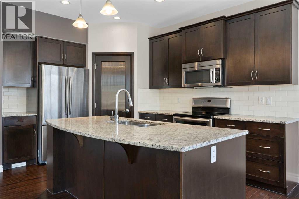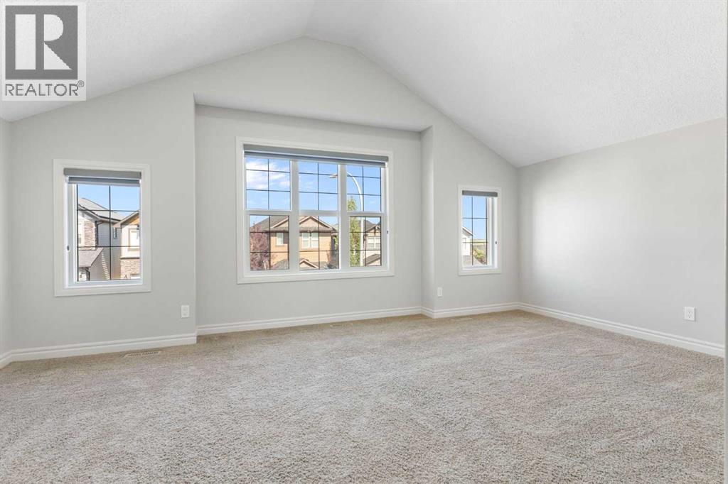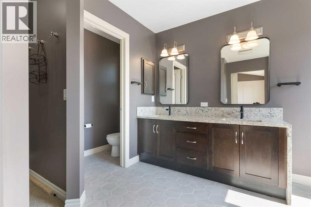 Beautifully maintained and move in ready, this home is located steps away from a peaceful green space and just minutes from shopping, dining, and other amenities. The main floor features a bright open layout with a kitchen that includes a center island and walk through pantry, leading to the mudroom and heated attached garage with workbench. Large windows fill the space with natural light and overlook the south facing backyard. This beautiful home is equipped with modern upgrades and thoughtful details throughout. The property features a central automated irrigation system with sprinklers in both the front and back yard, providing convenience and a lush, green landscape during the summer days. The backyard has been upgraded with over $40,000 in enhancements, including a spacious deck, a gas outlet for a BBQ and heater, and a dedicated connection for a hot tub — creating an exceptional outdoor space perfect for entertaining and relaxation.Upstairs, you will find three bedrooms, including a vaulted primary suite that adds elegance and space. The suite features a walk in closet and a luxurious ensuite with double vanity and oversized open shower. Additionally, the master bathroom boasts heated floors, offering comfort and luxury in every season. A vaulted bonus room provides additional living space, while upper level laundry and a second four piece bathroom complete the floor.The fully finished basement offers a family room, bright bedroom with large window, four piece bathroom, and wet bar. Additional highlights include air conditioning and abundant natural light throughout. For added convenience, the garage is also heated, making winter mornings easier and providing extra usability all year long. This home is ready to welcome its new owners. (id:6769)