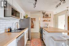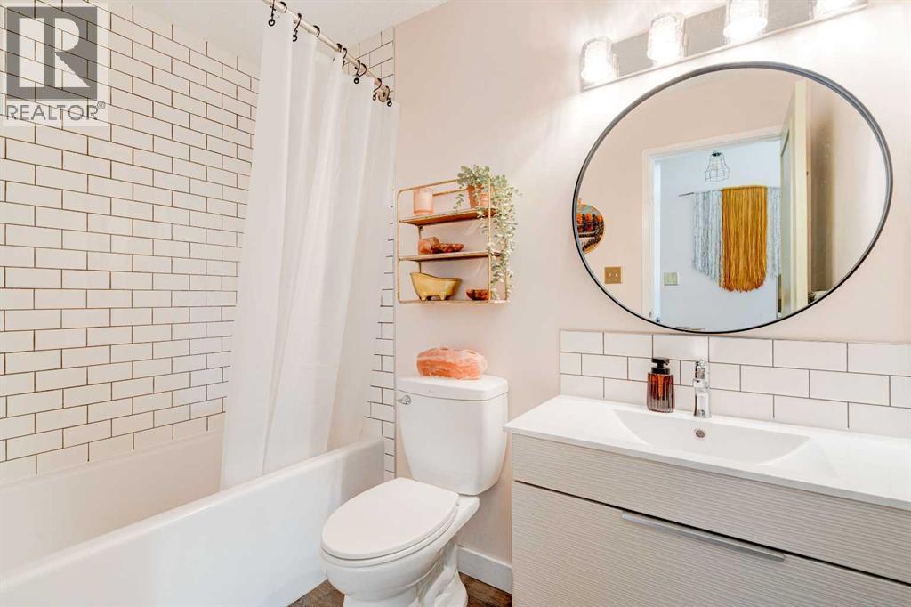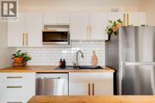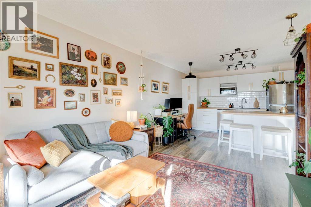 Welcome to this fully updated top floor unit that features 521 square feet and is situated in the central and amenity-rich community of Sunalta. This 1 bedroom, 1 bathroom condo is located in a quiet concrete building and features low condo fees, offering the perfect opportunity for first-time buyers or investors. A dedicated entryway greets you as you enter the home and resilient luxury vinyl plank flooring flows throughout the unit. The home offers an open-concept layout with South-facing exposure that floods the space with natural light throughout the day. The beautifully updated kitchen offers stainless steel appliances, subway-tile backsplash, a large peninsula with a breakfast bar for additional seating, bamboo countertops, and a wall of cabinetry with ample storage. The kitchen overlooks the living and dining areas - making this the perfect space for entertaining friends and family. The spacious bedroom can accommodate a king-sized bed and offers a large open double closet. The updated 4-piece bathroom features a floating vanity, a deep bathtub, and subway tile backsplash throughout. The spacious and covered South-facing balcony offers the perfect space to enjoy the warmer summer months and has plenty of room for a barbeque and patio furniture. Additional features that round out this unit include updated lighting throughout, high speed fibre-optic internet (perfect for working from home), an in-unit storage room, a separate large storage locker, and secure underground parking to keep your vehicle safe and out of the elements. The building offers its own sauna and bike storage and has been well-managed and maintained, with extensive recent renovations throughout. This pet-friendly building only requires condo board approval. Centrally located in the heart of Sunalta, this property offers the perfect walkable location and is only a short walk to nearby public transit, breweries, restaurants, cafes, shopping, and entertainment. Daily commuting is easy with only a 2 minute walk to the Sunalta LRT station and quick driving access to 14th Street. Don’t miss out on this incredible value and opportunity in Sunalta! (id:6769)