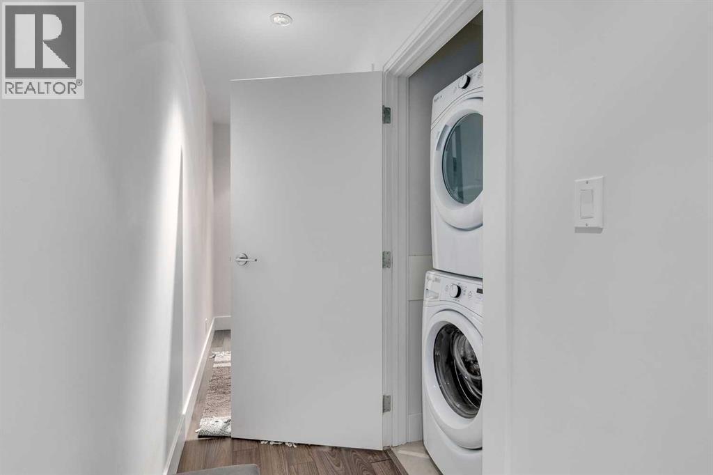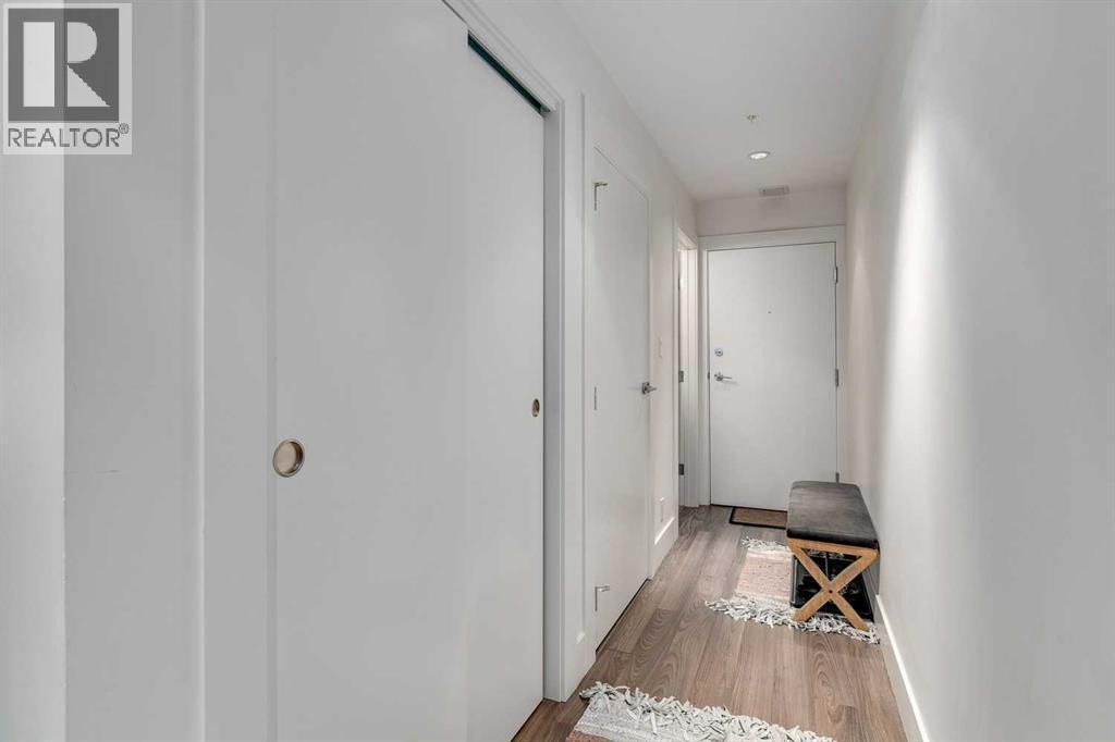 * New Price *Nestled in the heart of Bridgeland — this stylish top floor one-bedroom offers the perfect blend of modern design and urban convenience. Inside, the unit is in immaculate "like new" condition. The kitchen boasts a sleek galley-style layout equipped with high-end appliances (gas range!), Quartz countertops, and laminate flooring. The open-concept design seamlessly connects the dining and living areas, creating a very functional layout. The bedroom is large with full closet and TV mount already installed. Step out onto your balcony to take in the views of the green space.. The unit has full size washer and dryer. Residents enjoy a host of amenities, including secure underground titled parking, a private storage locker, bicycle storage, access to a beautifully landscaped courtyard, and a fully equipped fitness centre. Schedule your private viewing today. (id:6769)