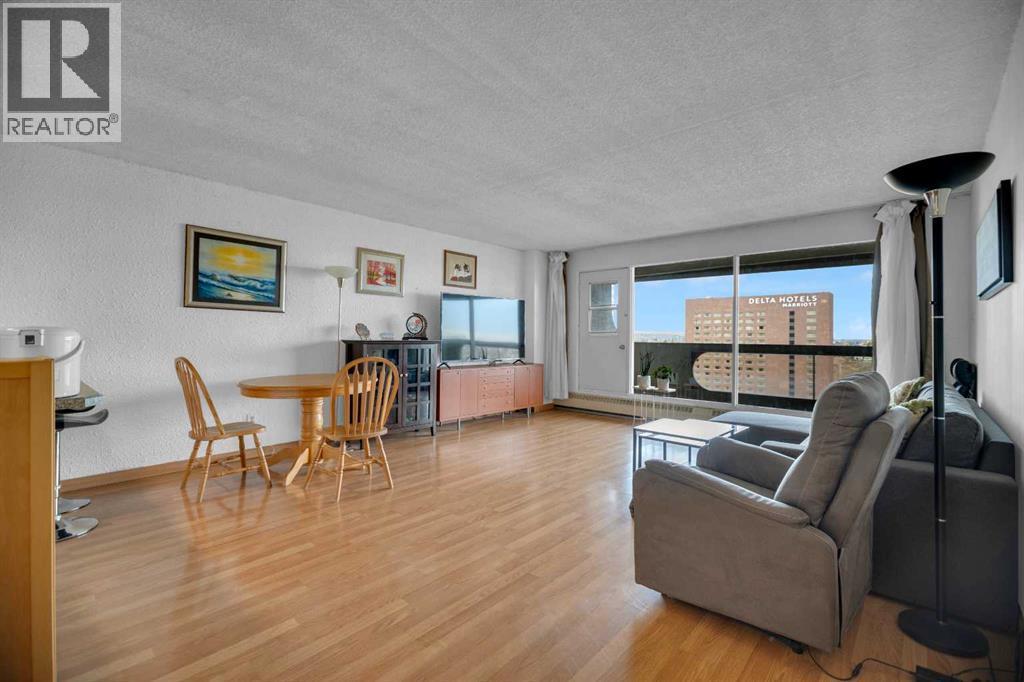 Location! Location! Location! Rocky Mountain Court. This north facing 1 bedroom home is located in the heart of downtown. Located on the 25th floor, it has a beautiful downtown view. This immaculate home has an open floor plan. Huge living room leads to an oversized balcony 8 x 27 ft. with city view. Spacious bedroom with large windows. The kitchen cabinets and bathroom sink have been replaced. The amenities of this building include laundry room on every floor, racquetball court, exercise room with sauna, a rooftop terrance and an underground parking stall (B9), secured front entrance with cameras, on-site building manager 5 days a week, evening security personnel. Endless downtown amenities are within walking distance: the Central library, Stephen Ave, Theatre/ Concert Halls, YMCA, Superstores, restaurants with varieties of cuisines, C-Train & public transportation. It is within walking distance to the Bow river & Princes Island Park. Either to have this as a rental investment or to call this your first home, it is a great buy! (id:6769)