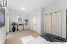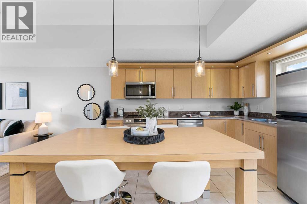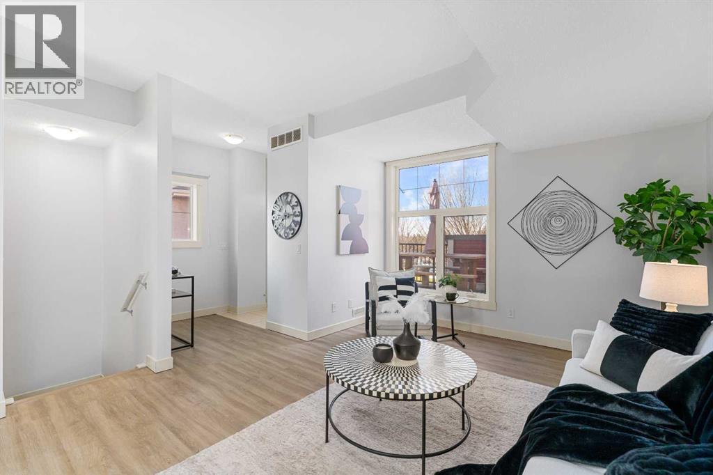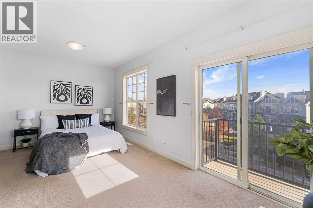 Discover this beautifully styled, move-in-ready townhome situated in a fantastic location. Ideally close to parks, shopping, schools, and an abundance of dining options, this home offers everything you need for comfortable and convenient living.The main floor features a bright, open layout with 9-foot ceilings, durable laminate flooring, and plenty of cabinets in the kitchen. The large island, stainless-steel appliances, and ample counter space make it perfect for cooking and entertaining. A conveniently located laundry room and half bathroom complete the main level. Step outside onto the west-facing front deck, where you can enjoy sunny afternoons and cool evenings, or relax on the back deck, ideal for summer barbecues.Upstairs, you'll find two spacious bedrooms, each with its own ensuite bathroom, providing privacy and comfort. A balcony with double sliding doors offers additional outdoor space to unwind.This townhouse is located within walking distance to schools, parks, tennis courts, and both West 85th and West Springs Village, offering a variety of restaurants, boutique shops, and professional services. The nearby West District Central Park, spanning 8.4 acres, features pathways, ice skating, farmers' markets, events, a skatepark, basketball courts, and concerts at the outdoor amphitheatre. Easy access to the newly completed Stoney Trail ensures quick travel around Calgary.Don’t miss the opportunity to view this outstanding, stylish home in an incredible community. (id:6769)