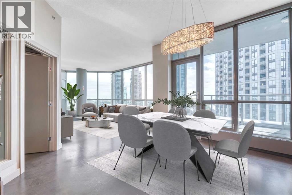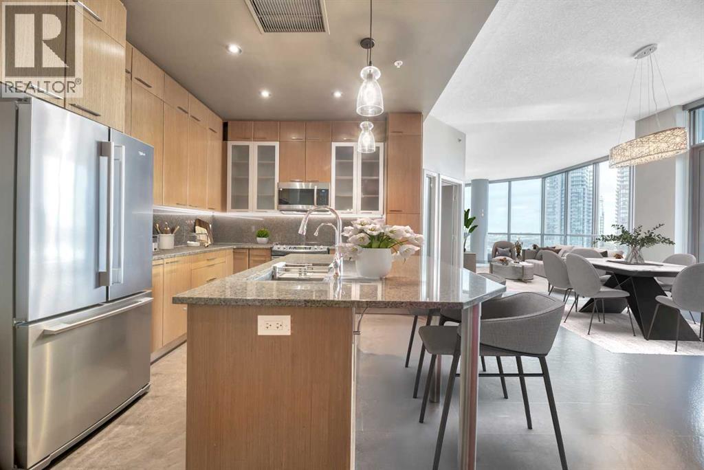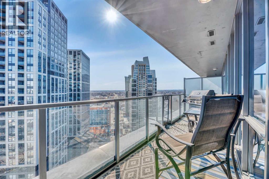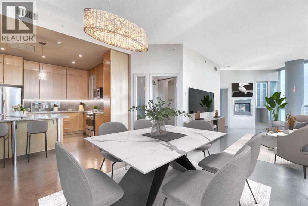 PRICED TO SELL!! Enjoy elevated urban living in this stunning SkySuite at Keynote One, perfectly set in the heart of Calgary’s vibrant Beltline. Wrapped in floor-to-ceiling windows, this two-bedroom plus den residence showcases breathtaking panoramic views—from the Rockies to the Bow River to Stampede Park.Inside, modern design meets everyday comfort. The stylish kitchen features granite countertops, ceiling-reaching cabinetry, upgraded appliances, and a spacious island—ideal for casual dining or entertaining guests. The dining area flows seamlessly to a large private balcony with a gas BBQ hookup, where you can soak in dazzling sunrises and sparkling city lights.A double-sided fireplace connects the inviting living room to the serene primary suite, complete with a second private balcony, heated floors in the spa-inspired ensuite, and a fully customized walk-in closet. The second bedroom and bath are perfectly positioned for guest privacy.Over $50,000 in thoughtful custom upgrades elevate every corner of this home—ShelfGenie drawer organizers, a bespoke built-in desk and storage in the den, a dresser in the guest room, under-cabinet lighting, and a premium Kinetico-5 water filtration system.Titled parking is conveniently located near the elevator, with the option to rent additional stalls. A secured, titled storage locker is also included.At Keynote One, residents enjoy premier amenities including two fitness centres, guest suites, a stylish owner’s lounge, rooftop terrace with BBQs, and secure bike storage. Professionally managed with an on-site manager, this building offers unmatched peace of mind and convenience.Downstairs, you’ll find Sunterra Market, Starbucks, 5 Vines, and Calgary’s most exciting new dining and entertainment options—plus easy access to Stampede Park, transit, and the downtown core.This stunning and well-appointed property in an iconic Beltline tower is exceptionally well-priced. Don’t miss out—book your private showing today! (id:6769)