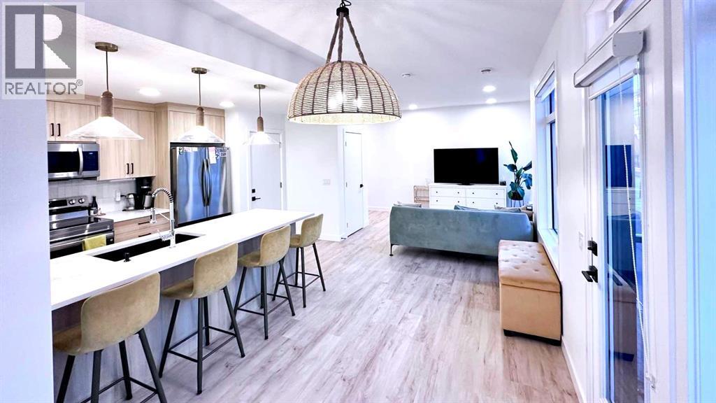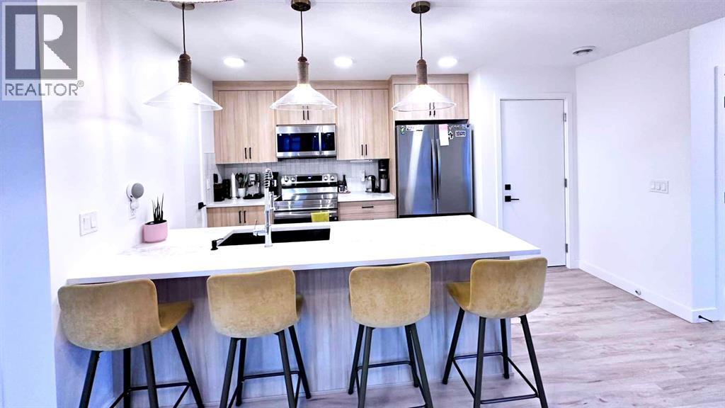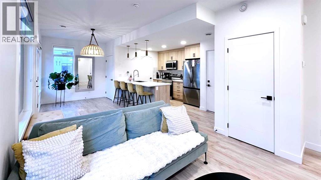 This is your opportunity to own 1 year old end unit with central AC, finished double garage with epoxy flooring, full gym and a sauna, 2 balconies and low strata fees ($231). Seton is a vibrant, master-planned community known for its modern amenities, healthcare facilities, retail options, and recreational spaces, making it a desirable place for both living and working. Main floor features open layout that connects kitchen, dining and living space. The kitchen features: quartz counters, stainlesteal appliances, beautiful cabinetry, large eating island, storage space. The main floor is completed with additional windows on the end unit, as well as a balcony. Upstairs has 3 bedrooms, 2 full baths, second balcony is located in primary bedroom. Laundry room is also located upstairs.This unit comes with window coverings, central water filtration system and water softener. Yes it is also pet friendly. Newly built HOA building equipped with tennis courts, pickleball courts, ice ring, basketball court and so much more will allow you and your family to relax during your leisure time. (id:6769)