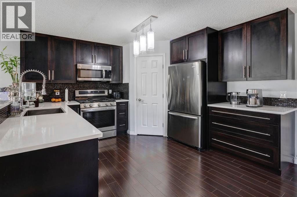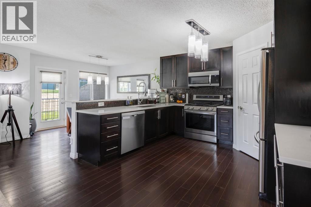 PRE-INSPECTED | CORNER UNIT | CENTRAL AC | 2 OVERSIZED BEDROOMS (WITH +1 POTENTIAL DEN/EXTRA ROOM) NEW ROOF | GORGEOUS POND VIEW | Welcome Home to Hidden Valley! This beautifully maintained half-duplex offers comfort, style, and unbeatable views right beside a scenic pond. Featuring a brand-new roof (July 2025) with Stucco sidings and central A/C for those warm summer days this home is move-in ready and waiting for you.Step inside to a bright and spacious living room with large windows, dark laminate flooring, and a cozy electric fireplace—perfect for relaxing or entertaining. The open-concept dining area flows seamlessly to your private composite deck, offering stunning pond views year-round. Top notch technology like google nest to control your thermostat, kitchen appliances and security system makes this your dream home. The modern kitchen boasts quartz countertops, rich brown ceiling-height cabinetry, a gas range, Bosch dishwasher, and stainless steel appliances. A walk-in pantry provides ample storage, and a convenient half bath completes the main level.Upstairs, you'll find two OVERSIZED primary bedrooms that can be easily converted into a den or a third bedroom, each with its own 4-piece ensuite and walk-in closet. There’s also a computer nook—ideal for a home office—with incredible views of the community pond. Best of all, the entire home is carpet-free for easy maintenance. Central vacuum is also part of this amazing home. The fully finished basement offers additional living space, complete with a modern washer and dryer. An attached garage and driveway provide room for two vehicles.Located in the desirable community of Hidden Valley, this home is close to multiple schools, shopping amenities, and major roadways like Stoney Trail and Deerfoot Trail. With low condo fees that cover exterior maintenance, you can enjoy a hassle-free lifestyle in a serene setting.Don't miss your chance—book your private viewing today and fall in love with this beauti ful home! (id:6769)