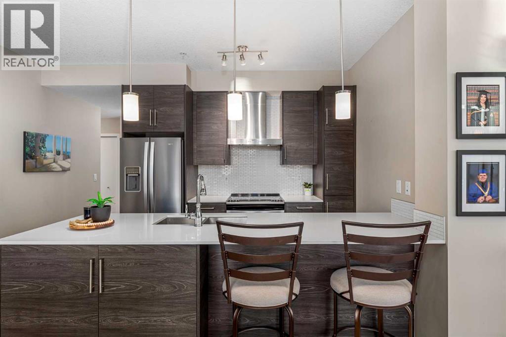 Experience resort-style living every day at the highly coveted Westman Village on Mahogany Lake. This exceptional 2-bedroom, 2-bathroom fourth-floor corner condo is more than a home—it’s a lifestyle. From the moment you arrive, you’ll see why Westman Village is one of Calgary’s most sought-after communities, offering an unmatched blend of luxury, convenience, and connection. Inside, you’ll be welcomed by expansive wraparound windows that flood the home with natural light and frame serene courtyard views. The open-concept design flows seamlessly from the chef-inspired kitchen with modern finishes and sleek cabinetry into the bright living and dining areas, making it perfect for both relaxing and entertaining. Both bedrooms are generously sized, each with large windows that keep them light and airy, while the primary retreat offers a walk-in closet and private ensuite. A second full bathroom adds convenience for guests or family. Step outside to your private wraparound patio, complete with a unique two-sided deck—enjoy sunshine with your morning coffee on the south side and soak in the warmth all afternoon on the west side. Whether it’s the soothing sounds of the courtyard fountain, peaceful evening views, or even the Stampede fireworks in summer, this outdoor space is designed for every moment. Adding to its appeal, this condo is thoughtfully situated in a corner position with only one attached neighbour, providing extra privacy and tranquility. It also comes with a titled underground parking stall, a convenient private storage locker directly in front of your parking space, 24-hour concierge service, top-notch security, and ample visitor parking with EV charging stations. But what truly sets this property apart is the lifestyle that comes with it. At Westman Village, every day can feel like a vacation. The 40,000 sq. ft. amenity centre is second to none, featuring a swimming pool with a two-storey waterslide, a golf simulator, a fitness centre, a movie theatre, a fu ll-sized gymnasium, basketball courts, a workshop, a craft studio, and beautifully appointed party rooms. Whether you want to stay active, pursue a hobby, or simply unwind, there’s something here for everyone. Dining and entertainment are at your doorstep, with renowned venues such as Chairman’s Steakhouse and Alvin’s Jazz Club just steps away, along with cafés, boutiques, and everyday conveniences. Stroll through landscaped pathways, meet friends for dinner, or take a leisurely walk along the shores of Mahogany Lake—Calgary’s largest freshwater lake with exclusive resident access. With quick access to Deerfoot and Stoney Trail, commuting and exploring the city is a breeze. If you’re looking for more than just a home—if you’re looking for a community that offers connection, convenience, and a resort-style lifestyle year-round—you’ve found it here in Westman Village. (id:6769)