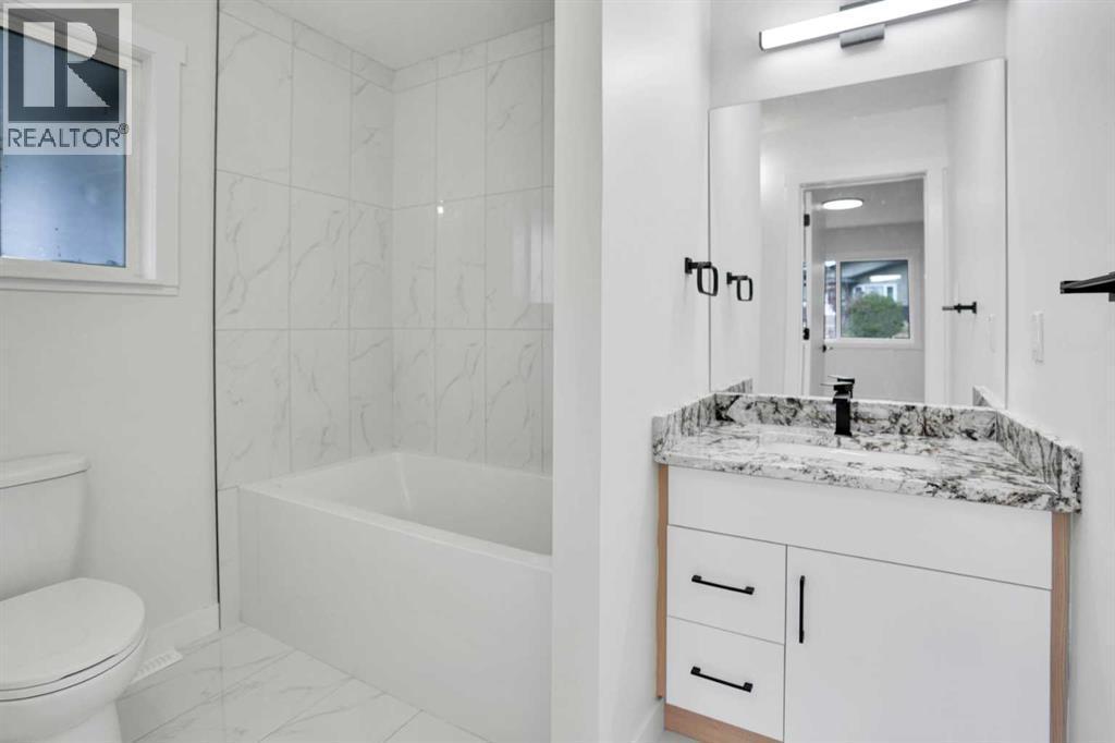 Welcome to your dream home in Thorncliffe! Perfectly located within walking distance to shopping, schools, and everyday amenities, this fully renovated bungalow offers the perfect blend of style, comfort, and convenience. Featuring 4 bedrooms, a Office/den space, 3.5 bathrooms, a detached garage, and over 2,400 sq. ft. of reimagined living space, this property has been stripped to the studs and rebuilt with precision—everything is brand new and never lived in. The exterior shines with new stonework, roof, gutters, downspouts, exterior doors, few new upstairs windows, new floor, paint, lighting fixtures, brand new appliances and all new basement windows, plus immaculate landscaping with concrete walkways, fresh sod, fencing, and new front stairs. A spacious sun deck overlooks the beautifully maintained backyard, ideal for relaxing or entertaining. Inside, the open-concept main floor is bright and inviting. The living area flows seamlessly into a custom chef’s kitchen with brand new built-in appliances, a electric cooktop, and chimney hood fan. A half-bath for guests adds convenience, while the primary bedroom offers a walk-in closet and spa-inspired ensuite with a luxurious shower. A second large bedroom with its own full bath, plus separate laundry completes the main level. Fully finished Illegal basement suite comes with 2 bedrooms plus Office/den space complete with a custom kitchen, huge living area with a big window, full bathroom, separate laundry, and a separate entrance—perfect for extended family or guests. Set in one of Calgary’s most desirable communities, you’ll enjoy quick access to parks, schools, transit, shopping, and major routes. With every detail thoughtfully redone—new, modern, and move-in ready—this home offers peace of mind and unmatched comfort. Everything is new. Everything is ready. All that’s missing is you! Book your showing today... (id:6769)