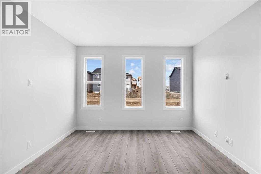 OPEN HOUSE SATURDAY NOVEMBER 1st 1:00 - 3:00 PM. Welcome to this impressive, newly built home located in the sought after NW community of Ambleton. Thoughtfully crafted with modern finishes and a functional layout, this home offers exceptional comfort and style. Step inside to find luxury vinyl plank flooring extending throughout the main floor, leading you into a bright and open layout that includes a spacious living room, dining area, modern kitchen, and a flex room—perfect for a home office, playroom, or den. The kitchen is a chef’s dream, showcasing quartz countertops, stainless steel appliances, a gas stove, full ceiling-height cabinets with elegant crown molding, and a glass-door pantry for added storage. Upstairs, soft plush carpets and large windows throughout bring comfort and natural light into all three generously sized bedrooms. The primary bedroom is impressively sized, easily fitting a king-size bed with nightstands and dressers, and features a walk-in closet with a window and a large ensuite. The upper level also includes a shared 4-piece bathroom and a separate laundry room. The unfinished basement offers high ceilings, rough-ins, and a separate side entrance, providing endless opportunities for future development, including a potential legal suite (subject to city approval and permitting). Out back, you'll find a double parking pad, ready for your future double detached garage. This home is ideally located within walking distance of a playground and just minutes to local schools, transit, and top shopping destinations such as Carrington Plaza and Creekside Shopping Centre, Walmart, Beacon Hill Costco, and T&T Supermarket. Plus, with easy access to Stoney Trail and Deerfoot Trail, commuting around the city is a breeze. This is your chance to own a stylish, move-in-ready home in one of Calgary’s most exciting new communities. Schedule your private showing today! (id:6769)
