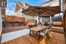 Welcome to this exceptional custom-built home, perfectly situated in one of Calgary’s most sought-after inner-city communities. Boasting over 2,600 sq. ft. of meticulously designed living space, this home blends refined craftsmanship with modern elegance — all just minutes from downtown. Step through the welcoming front entrance into an open-concept main level featuring 9-ft ceilings, rich hardwood floors throughout, and a designer staircase that seamlessly connects the home’s beautiful living spaces. The living room exudes warmth and style, anchored by a floor-to-ceiling tiled gas fireplace — a perfect focal point for cozy evenings. Custom built-in cabinetry adds both charm and functionality, creating a space designed for comfort and connection. The dining area offers an elegant setting for gatherings, while the chef-inspired kitchen is truly a showpiece — complete with a massive quartz island, premium stainless steel appliances, extended cabinetry, and abundant storage. Whether you love to entertain or cook with family, this kitchen delivers both form and function. From the kitchen, step outside to your professionally landscaped, low-maintenance backyard — fully fenced, south-facing, and exceptionally private. The extended patio creates the perfect space for outdoor dining and relaxation in the sun. Upstairs, discover three spacious bedrooms, each designed for rest and relaxation. The primary suite is a private retreat, featuring a spa-inspired ensuite with a dual vanity, soaker tub, tiled glass shower, and a generous walk-in closet. Large windows and custom window coverings complement the 9-ft ceilings, bathing each room in natural light.The upper-level laundry adds additional convenience. Downstairs enjoy the fully developed basement extending the home’s versatility — rec room with built-in surround sound, fourth bedroom and/or home gym with a murphy bed, and a stylish four-piece bathroom completes this space. Additional luxury upgrades include Air Conditioning , GEM Stone exterior lighting (never hang Christmas lights again), central vacuum system, and more. Located in vibrant Currie Barracks, you’re surrounded by parks including outdoor rink, splash pad, playgrounds, walking paths, schools, and local amenities — plus easy access to the downtown core in under 10 minutes. Bonus ** Approved City Development Permit for a future Carriage Home — an incredible opportunity for added value or income potential. Experience the craftsmanship, comfort, and lifestyle this remarkable home offers. (id:6769)