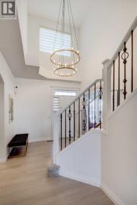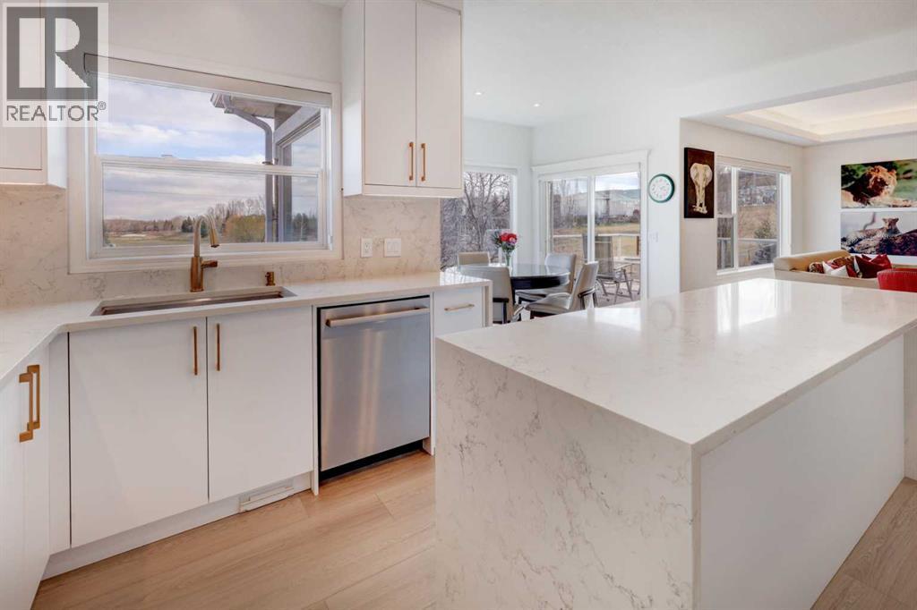 Welcome to this breathtaking 3700+ sq ft beautifully renovated detached home perfectly positioned on one of the most desirable lots in Valley Ridge, backing onto a serene green belt and the Valley Ridge Golf Course and pond. Enjoy sweeping, unobstructed views of the fairways, water features and morning sunrises that fill the home with natural light. This home has 4 large bedrooms, 3.5 bathrooms, main floor study/flex room, and has been extensively updated to combine modern elegance with timeless comfort. Notable renovations include: a fully redesigned kitchen with new custom cabinetry, quartz countertops, and premium built-in appliances including wall oven, microwave, cooktop, dishwasher, and a custom hood fan. Brand new carpet on the upper level and stairs, luxury vinyl plank flooring throughout the main floor, fresh paint across the entire home, designer lighting upgrades, including statement chandeliers in the foyer and dining area, new pot lights for bright, even illumination, a modernized fireplace with a sleek quartz surround, new upper-level windows and a newer roof for added peace of mind.The upper level offers three generous bedrooms. The primary retreat captures breathtaking golf course views and features two spacious walk-in closets and a 5-piece ensuite. Two additional large bedrooms — each with their own walk-in closet — and a full bathroom complete this level. On the main floor, a bright and versatile flex room makes an ideal home office, study, yoga space, or creative studio, with plenty of afternoon sunlight and large windows. The fully developed walkout basement provides incredible flexibility. It includes a full kitchen with stove, microwave, dishwasher, fridge, and hood fan — perfect for a tenant, accommodating a live-in caregiver, or offering private space for extended family.Disclosures: Basement development was completed without permits approximately 20 years ago and has a tenant. Sellers are related to the listing agent. Jetted tub i n primary ensuite 'as-is' - jets have not been turned on in years.With its prime location, extensive renovations, and exceptional views, this property offers a rare opportunity to own one of Valley Ridge’s finest and renovated homes. This home is just 15 minutes from downtown Calgary and a short drive to the Rockies, the location offers a rare combination of serene privacy and city convenience. (id:6769)