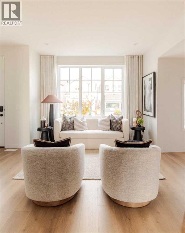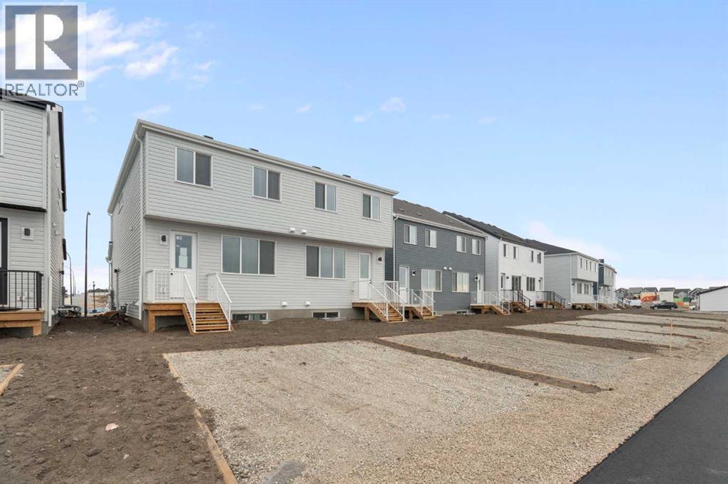 Welcome to the Aurora—a stunning paired home that blends modern farmhouse style with thoughtful functionality, located in the heart of Rangeview—Calgary’s award-winning Community of the Year. This is a home designed for real life, offering a smart layout, timeless charm, and access to one of the most vibrant, forward-thinking neighbourhoods in the city. From the street, the modern farmhouse exterior stands out with its clean lines, bold contrast, and character-rich curb appeal. Inside, a bright, open-concept layout welcomes you in, filled with natural light and layered with design details that make every space feel intentional and inviting. At the center of the main floor is the well-appointed kitchen, flanked by the living and dining areas to create a seamless, functional flow. Whether you're entertaining guests or cooking up a quiet family dinner, this kitchen delivers with quality cabinetry, ample counter space, and a layout designed for connection. Just off the main living area, a smart pocket office offers a quiet, tucked-away workspace—ideal for working from home, managing schedules, or even creative pursuits. Toward the rear, a mudroom with built-in storage leads out to your private backyard, offering a great space to relax, garden, or entertain. You also have the flexibility to develop a future garage or outdoor setup to fit your lifestyle. One of the most versatile features of the Aurora is the side entrance, providing excellent potential for a future basement suite (A secondary suite would be subject to approval and permitting by the city/municipality) —ideal for extended family, rental income, or additional space to grow into. Upstairs, a bonus room offers the perfect second living area, creating separation and flexibility for family life. The primary bedroom is a cozy retreat with a private ensuite, while two more well-sized bedrooms, a full bath, and upper laundry rough-in complete the upper level. Throughout the home, triple-pane windows and energy-co nscious design help improve comfort and efficiency. But why Rangeview? Rangeview isn't just a neighbourhood—it’s a movement. Recently named Calgary’s Community of the Year, Rangeview is a one-of-a-kind agri-urban community inspired by food, connection, and sustainable living. With community gardens, orchards, edible landscaping, and seasonal events, this is a place where growing, sharing, and connecting are part of everyday life. Walkable streetscapes, welcoming green spaces, and architecture with real character make Rangeview feel like home the moment you arrive. Whether you’re picking fresh herbs from the communal garden, attending a local workshop, or simply chatting with neighbours on your front porch, life in Rangeview is rooted in a slower, more intentional rhythm. The Aurora in Rangeview isn’t just a home—it’s a lifestyle. (id:6769)