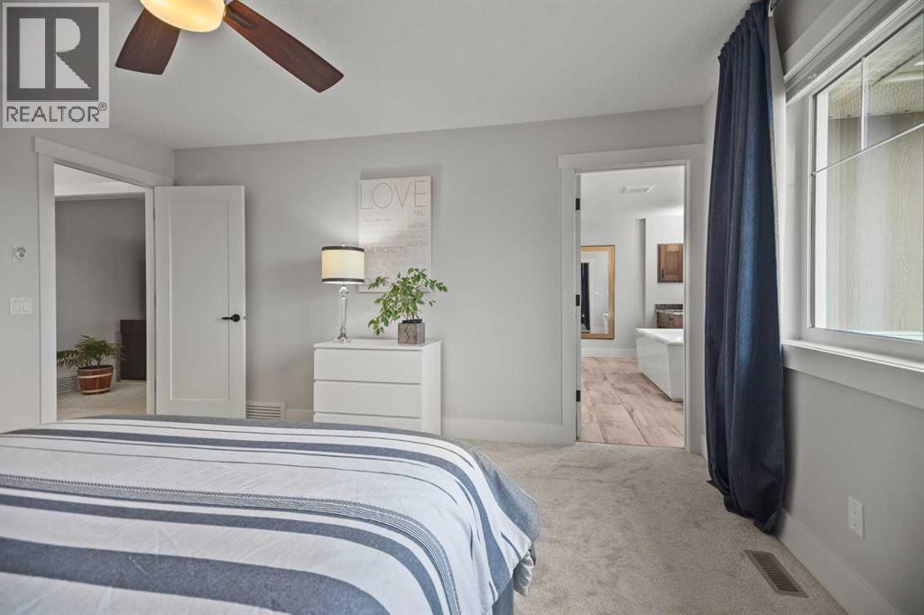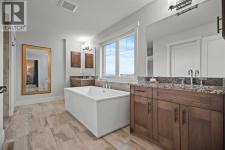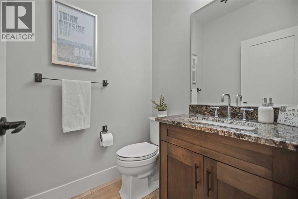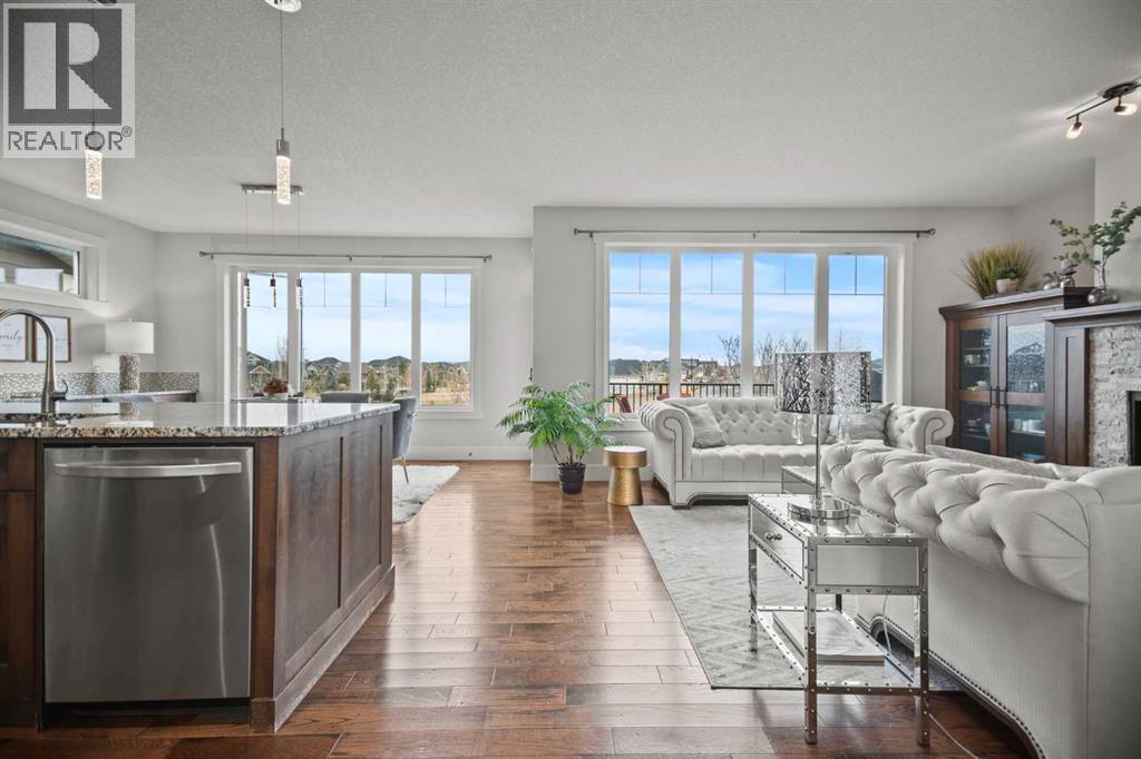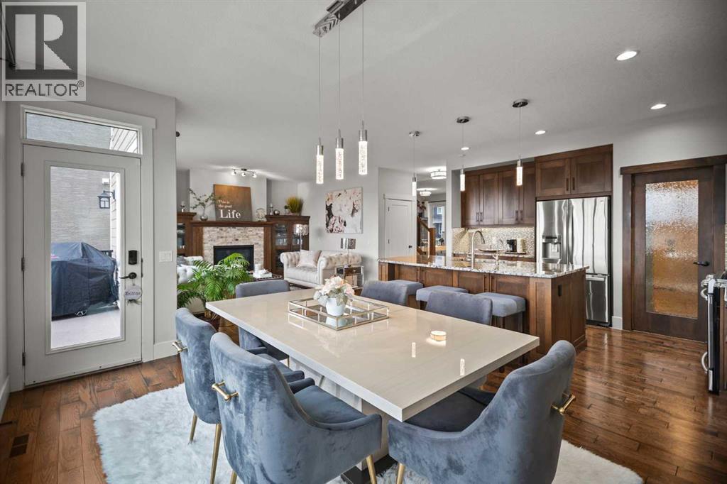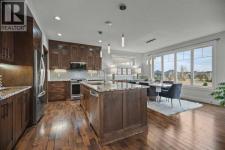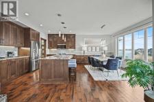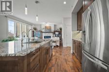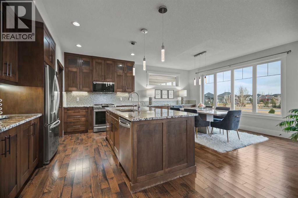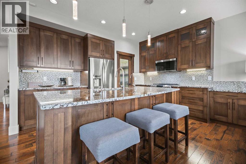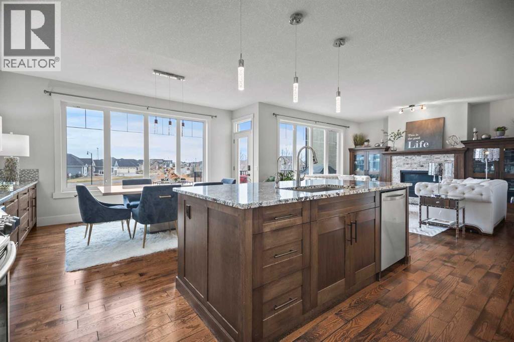 This stunning 2-story walkout home, offering over 3000 sq. ft. living space, is fully finished and features 4 bedrooms and 4 bathrooms with a second full kitchen in the walkout basement! Highlights of this exceptional home include: in-slab in-floor heat, insulated heated double garage with extra wide driveway, central air conditioning, hardie board siding, vinyl deck, upgraded Kohler plumbing appliances, custom cabinets/built-ins with real wood & dovetailed drawers, granite counters throughout, imported Italian tiles, 9 ft ceilings - main floor & basement, large patio, hardwood flooring, stunning vinyl deck overlooking the pond, gas stove (also 220V behind), central vacuum, water softener, and the list goes on! The main floor showcases an open concept design with 9-foot ceilings, custom cabinetry, and high-end stainless steel appliances, including a spacious island that overlooks the cozy living room with a gas fireplace and beautiful wood/glass cabinetry. Abundant windows fill the space with natural light, and you can step out onto a large deck that offers breathtaking views of the pond and vibrant fall colors. Upstairs, relax in the central bonus room or the master bedroom & its spa-like 5-pc en-suite. The spacious 2nd & 3rd bedrooms share the upgraded family bathroom. The walkout basement features a full kitchen, in-floor heating, a family/game room with a second kitchen, second laundry room, a fourth bedroom, and full bath, along with access to a lower walkout deck and a fenced backyard. Ideally located within walking distance to schools, Costco, and scenic pathways. This property is situated in one of Okotoks' most desirable neighborhoods. It's truly an ideal home for a growing family! (id:6769)