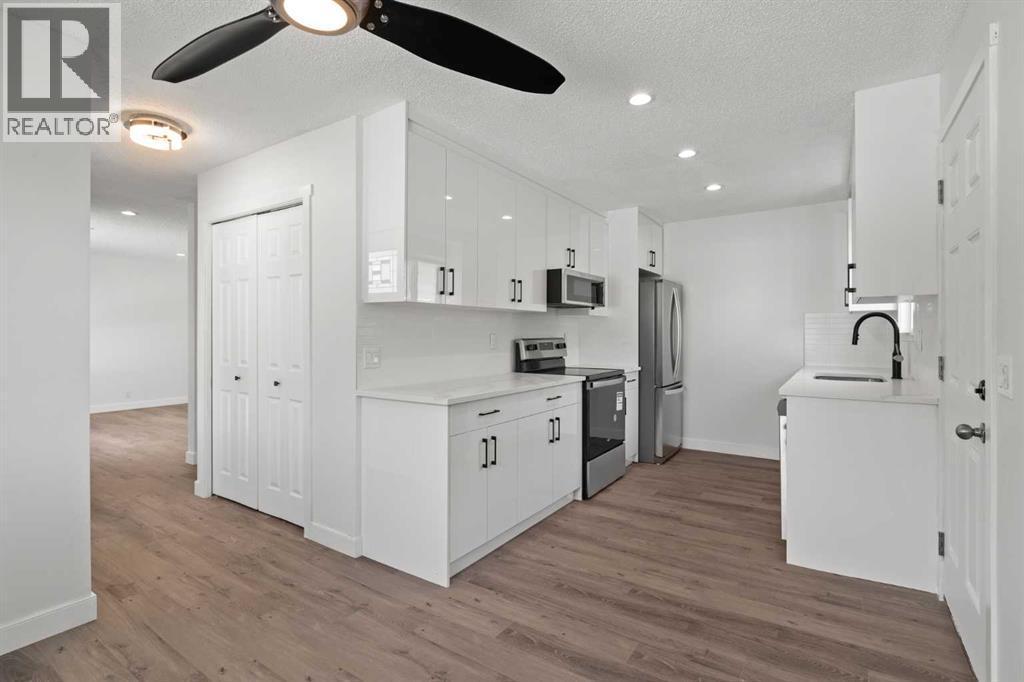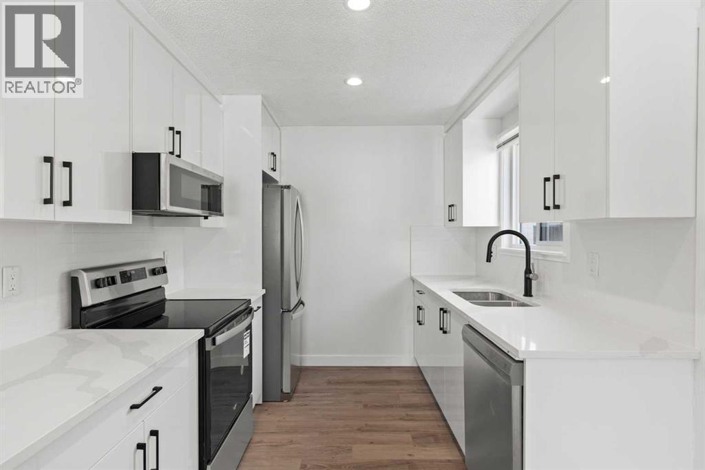 Renovated Bungalow Facing a Park – BRAND NEW Detached Double Garage Included. Location, lifestyle, and value come together in this wonderfully RENOVATED 4-bedroom, 2-bathroom bungalow, ideally located in the heart of Abbeydale - directly across from a little PARK & PLAYGROUND & tucked into a quiet, family-friendly street. Whether you're searching for your first home or a move-up property with room to grow, this thoughtfully maintained home checks all the boxes. Sitting on a generous lot with a sunlit Northeast front and Southwest back exposure, this property welcomes you with CHARMING curb appeal, a tidy yard, and front VIEWS of the open park - providing a daily dose of nature right outside your door. Step inside to discover a BRIGHT & beautifully designed main floor, where recent renovations & quality updates create a warm and STYLISH living environment. Luxury wide-plank vinyl flooring flows seamlessly throughout main living and dining area, setting the stage for easy family living and effortless entertaining. Large windows flood the space with natural light, giving the home an airy, inviting feel from the moment you arrive. At the heart of the home is a fully renovated, MODERN kitchen that truly delivers on both form and function. Crisp white cabinetry, premium quartz countertops, a classic subway tile backsplash, and quality stainless steel appliances make this kitchen a DREAM for home chefs and design lovers alike. Whether you're whipping up weeknight dinners or hosting holiday meals, this space is equipped to handle it all with ease and ELEGANCE. The main level offers three generously sized bedrooms, including a comfortable primary retreat with a large closet & window overlooking the backyard. Each bedroom has been well maintained, offering flexibility for families, guests, or a dedicated home office. The main bathroom has been COMPLETELY transformed into a spa-like retreat, featuring stunning designer tile, quartz countertops, a custom vanity with an undermou nt sink, and stylish plumbing fixtures - all thoughtfully chosen to ELEVATE your daily routines. Downstairs, the fully finished basement expands your living space with a massive family/recreation room, ideal for movie nights, games, formal dining or relaxing with loved ones. A spacious fourth bedroom, updated second bathroom, and dedicated laundry/storage/utility room add versatility & functionality to this lower level - perfect for multi-generational living. The backyard is fully landscaped and fenced, offering a QUIET and private retreat for play, gardening, or summer BBQs. A BRAND NEW Detached Double Garage & storage shed round out the property, ensuring convenience and plenty of space for all your lifestyle needs. Homes like this are RARELY available in such a PRIME LOCATION - just steps from parks, schools & everyday amenities, with quick access to 16th Avenue, Stoney Trail, and downtown Calgary. Don't miss out - CALL TODAY for a PRIVATE TOUR!! (id:6769)
