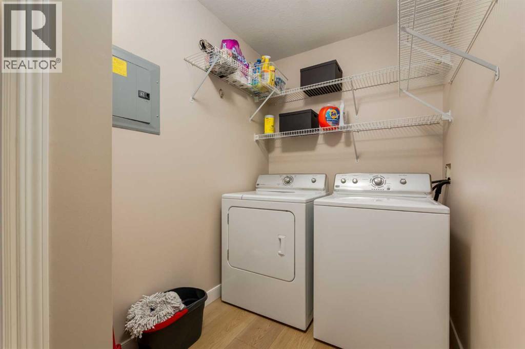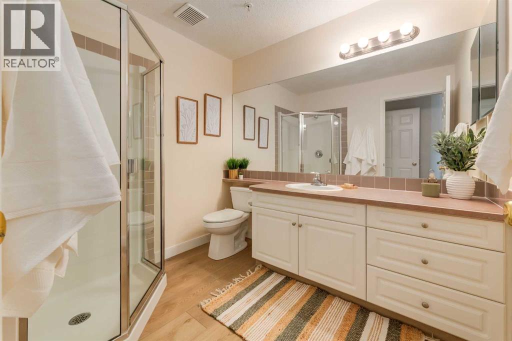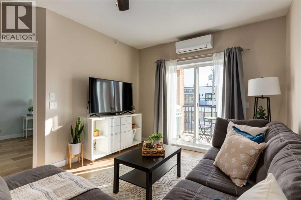 This sunny, bright 2nd floor, fully air conditioned 2 bedroom, 2 bath condo has been updated throughout! The white kitchen has plenty of cabinets, stainless steel appliances and an peninsula island with raised breakfast bar and overlooks the dining area and living room which has patio doors leading to your covered south facing balcony. The primary bedroom has a walk thru closet and 4 piece ensuite. The 2nd bedroom/den would be perfect for a home office or over night guests with the 3 piece bath close by. The insuite laundry room can accommodate full sized washer and dryer and provides insuite storage. You have a storage locker and a titled parking stall in the heated underground parkade which also has a car wash bay for the residents use. With such a great location close to the many amenities of Kensington, schools, transit, and an easy commute to downtown, SAIT, the U of C and the Foothills and the Children's hospitals, this home is not to be missed! (id:6769)