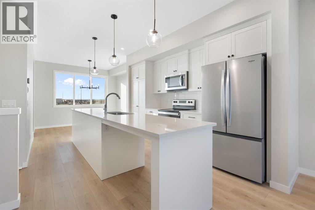 Welcome to this thoughtfully crafted attached home nestled in Rangeview, Calgary’s first garden-to-table community. Designed with timeless charm & modern functionality, this home combines character, comfort, & versatility in a way that just feels right. From the moment you pull up, the home’s classic farmhouse exterior, complete with smartboard detailing and front landscaping, makes a memorable first impression. Inside, the main floor unfolds in a bright, open-concept layout with large windows that bathe the space in natural light and elevate the overall warmth & livability of the home. At the front, the inviting living room offers the perfect place to relax or host guests, framed by soft neutral tones & high-quality finishes. The rear dining area is open & spacious—easily accommodating everything from weekday meals to larger holiday gatherings. In the centre of the home, the chef-inspired kitchen takes center stage. It’s designed for real life—with plenty of prep space, full-height cabinetry, & modern hardware—all tied together by large a large island, sleek countertops & a functional layout that keeps everything within reach. Whether you're cooking for one or a crowd, this kitchen is built to perform & impress. Just off the dining room, the rear mudroom adds practical elegance with built-in storage and direct access to your private backyard with room for a future garage—ideal for Calgary’s changing seasons and everyday convenience. Upstairs, the primary suite offers a peaceful retreat, featuring a spa-like ensuite with tasteful finishes, a walk-in shower, & space to truly unwind. Two additional bedrooms provide flexibility for kids, guests, or a home office, & the upper-level laundry adds convenience without sacrificing space. The home also includes a separate side entrance, creating an excellent opportunity to develop a future basement suite (A secondary suite would be subject to approval and permitting by the city/municipality) —perfect for multi-generational li ving or added income potential. Built with energy-efficient triple-pane windows, this home delivers year-round comfort & long-term savings without compromising on design. But why Rangeview? More than just a neighbourhood, Rangeview is a lifestyle centered around food, connection, & community. As Calgary’s first agri-urban community, it’s designed to inspire & connect—offering everything from community gardens & edible landscaping to seasonal food festivals, markets, & workshops. It’s a place where neighbours become friends & the simple act of growing, cooking, & sharing food brings people together. Stroll along walkable streetscapes, unwind in scenic parks, & discover a vibrant calendar of community events designed to enrich your everyday life. With stunning architecture, thoughtful urban planning, & a warm, welcoming spirit, Rangeview is a place to plant roots.Directions: (id:6769)