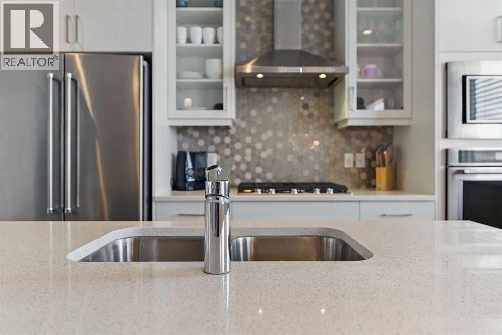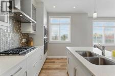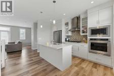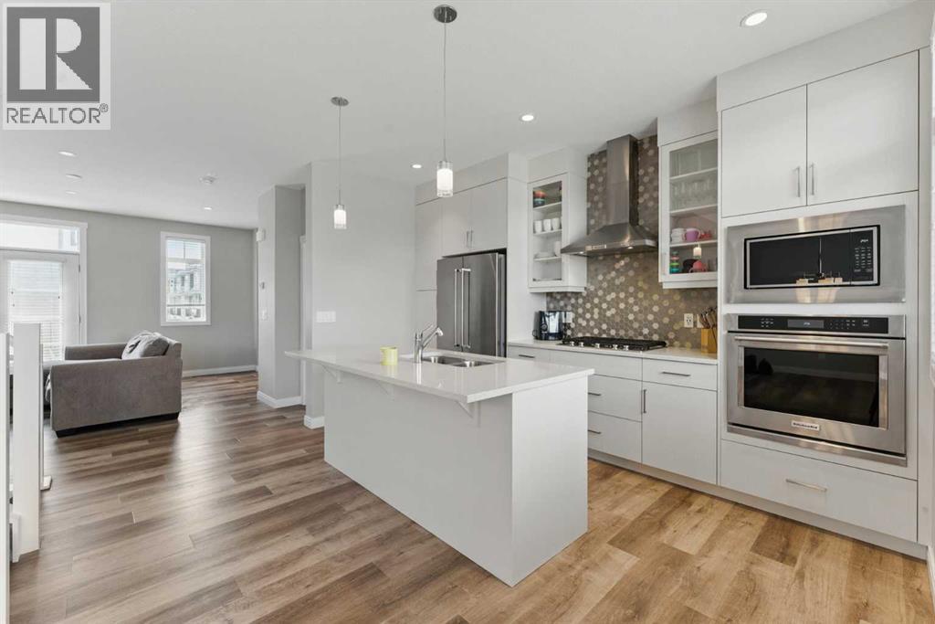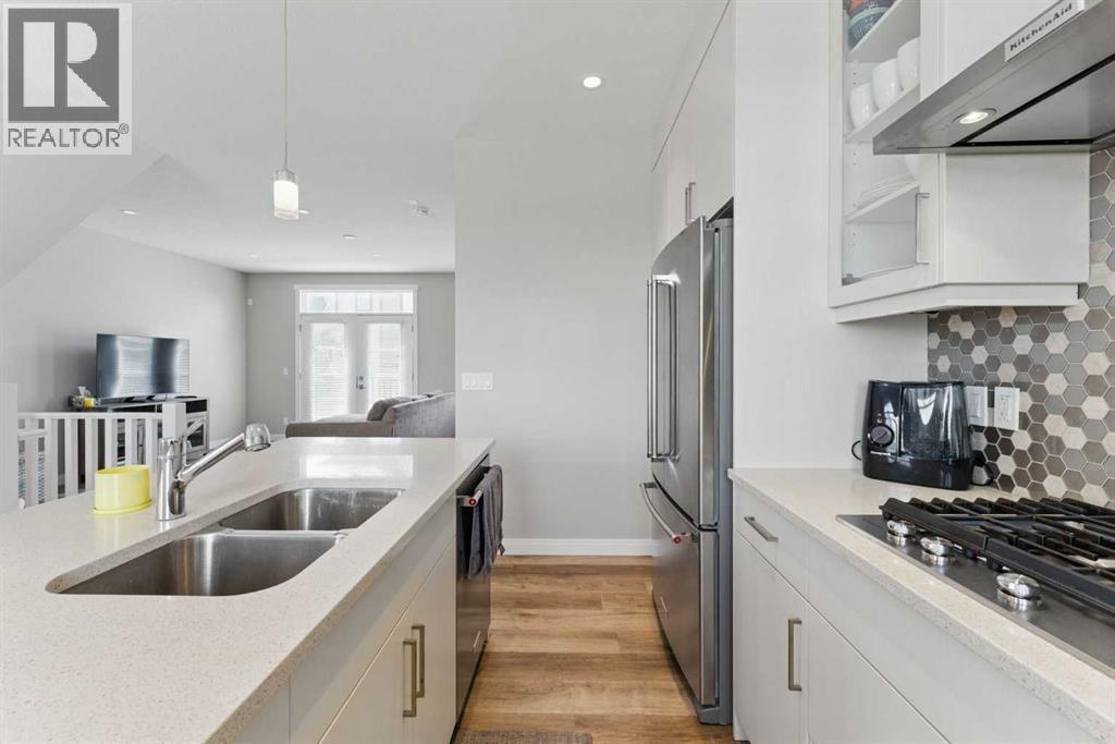 Welcome to Wentworth Pointe — a premium townhome community by Trico Homes in highly desirable West Springs. This luxurious end-unit is priced to sell and offers unbeatable value: 3 bedrooms, a double attached garage, and a modern open-concept layout designed for both comfort and style. The versatile main floor is ideal for a home office or business. A rare opportunity at this price point in one of Calgary’s most sought-after neighbourhoods.As you enter, you're welcomed by a versatile entry-level den or office space, accompanied by a convenient 2-piece bathroom—perfect for those working from home, running a small business, or needing a quiet study area.Upstairs, the main living level boasts soaring 9-foot ceilings and an abundance of natural light thanks to its end-unit position. The contemporary kitchen is a chef’s dream, complete with stainless steel appliances, a 6-burner gas stove, and a large quartz-topped island that flows seamlessly into the dining area—ideal for entertaining or family meals.The spacious living room offers flexibility for additional work or play space and opens onto a private west-facing balcony—perfect for morning coffees or relaxing summer evenings. A second 2-piece bathroom completes this thoughtfully designed floor.On the upper level, you'll find a generous primary suite featuring a walk-in closet and a luxurious 5-piece ensuite with a soaker tub and a separate tile-and-glass shower. Two additional well-sized bedrooms share a full bathroom, and stacked laundry on this level adds convenience to your daily routine.The unfinished basement provides a blank canvas with plumbing rough-ins for a future bathroom and an egress window—ideal for adding an extra bedroom, gym, or media room.Perfectly positioned, Wentworth Pointe is just steps from trendy shops, cafés, and restaurants, offering a vibrant urban lifestyle in a suburban setting. With easy access to downtown Calgary, minutes away from Stoney Trail, and nearby LRT stations, commu ting is a breeze. You'll also enjoy proximity to scenic green spaces, bike paths, and walking trails—a dream location for professionals and families alike.Don’t miss your chance to own in one of Calgary’s most desirable communities. (id:6769)