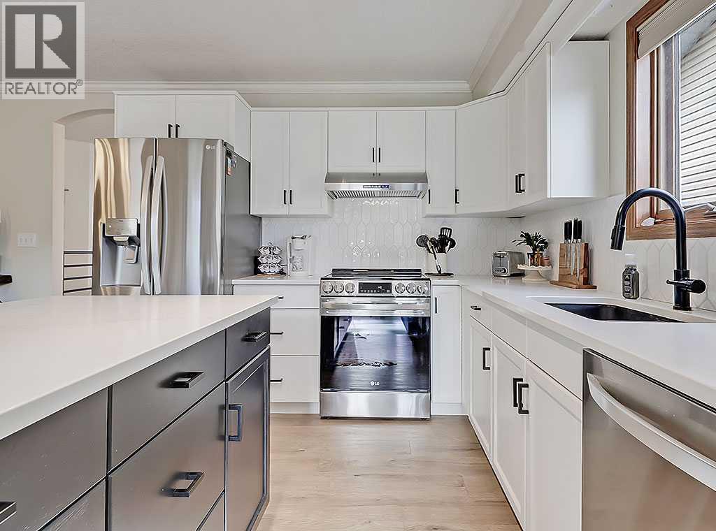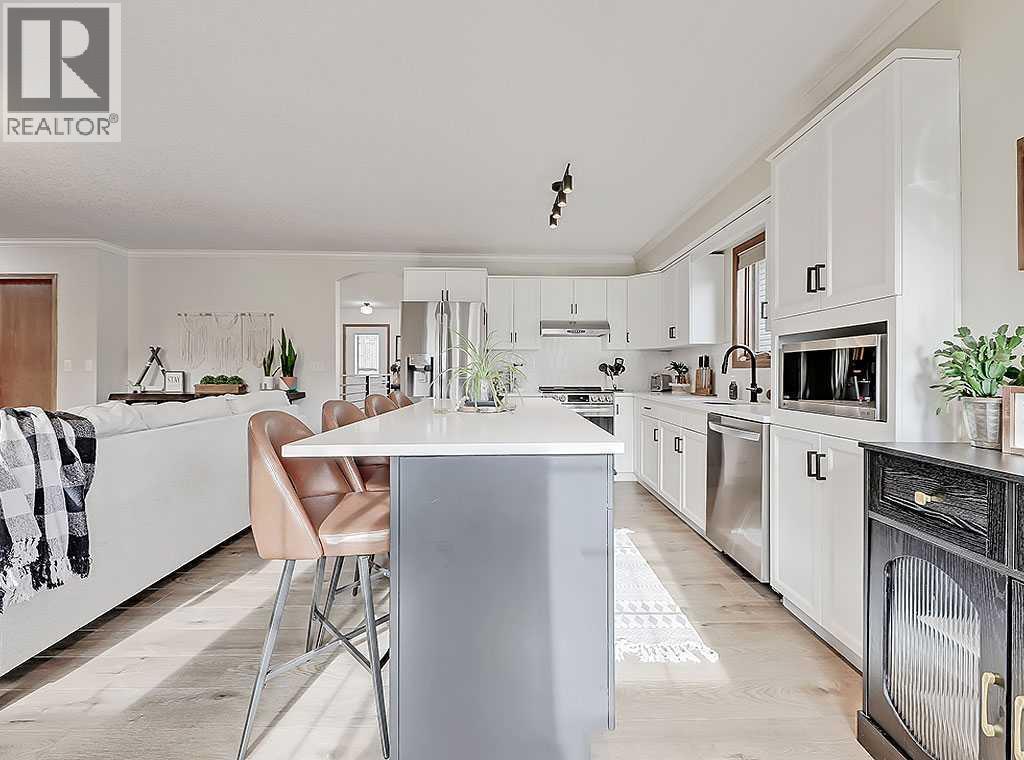 Charming Bungalow on a Quiet Street in Southeast High River.Welcome to this wonderful 4-bedroom home tucked away on a peaceful street located near schools, shopping and walking trails. This beautifully maintained home offers comfort, style, and thoughtful updates throughout.The main floor features a bright and inviting living room with a cozy gas fireplace and an adjacent dining area—perfect for family gatherings. The updated kitchen boasts new countertops, modern vinyl plank flooring, refreshed cabinetry, and a large island that provides ample storage and workspace. The adjoining family room is spacious and seamlessly connected to the kitchen, creating an ideal layout for everyday living and entertaining.The primary bedroom includes a walk-in closet and a renovated 3-piece ensuite, while a second bedroom and convenient main-floor laundry complete the level.Downstairs, the fully finished basement offers a large rec room with a second gas fireplace, two additional bedrooms, and another 3-piece bathroom—making it an ideal space for guests, teens, or extended family.Outside, you’ll enjoy a sunny south-facing deck, perfect for summer BBQs, as well as RV parking for your convenience.Don’t miss your chance to view this fantastic home—call today to schedule your private showing! (id:6769)
