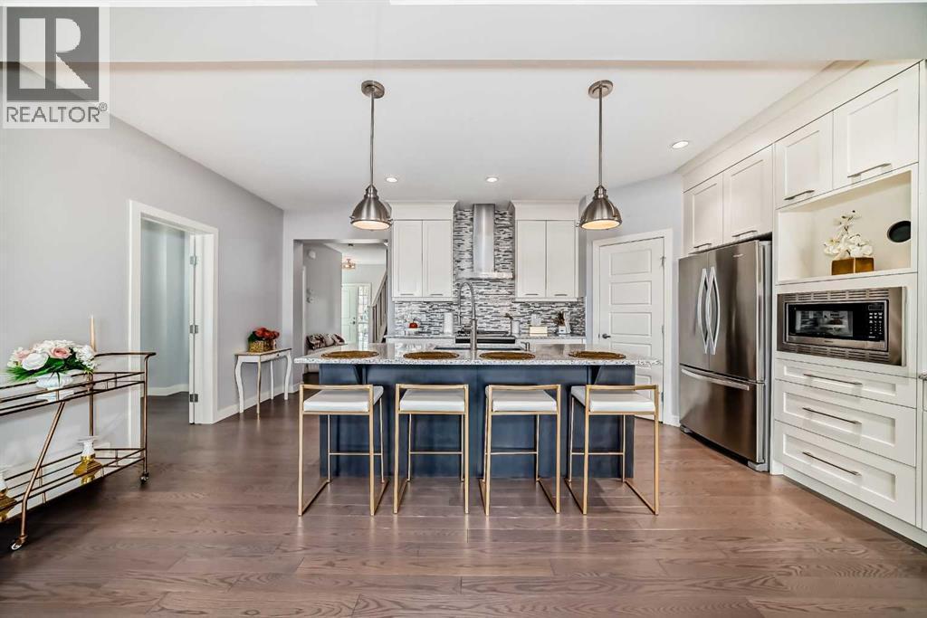 Stunning Calbridge Show Home – the Daytona 2 model with a triple tandem heated garage, located in the highly sought-after and family-friendly community of Legacy. This exceptional 2-storey home stands out with its thoughtful design, premium finishes, and over 3,000 sq. ft. of beautifully developed living space, including the fully finished basement with 9-ft ceilings. The main floor welcomes you with a spacious foyer leading to a bright open-concept layout filled with natural light. The living room features large windows and a sleek gas fireplace with stainless surround, creating a warm and elegant space for relaxing or entertaining. A main floor den/office provides the perfect setup for those working from home. The entire main level is enhanced with gorgeous wide-plank engineered flooring and upgraded lighting throughout. The chef-inspired kitchen is sure to impress with its large quartz island, ceiling-height custom cabinetry, stainless steel appliance package, quartz countertops, and a convenient walk-through pantry. The adjoining dining area is perfect for family gatherings, while the mudroom helps keep everything organized. A 2-piece powder room completes the main level. Upstairs, you’ll find a grand bonus room that’s ideal for movie nights or a play area. This level includes four generously sized bedrooms, a 5-piece main bathroom with quartz double vanity, and a convenient upper-level laundry room. The primary suite is a true retreat, featuring a large walk-in closet with built-in shelving and a luxurious 5-piece ensuite complete with an extended quartz vanity, soaker tub, and separate shower. The fully developed basement is an entertainer’s dream, offering a spacious family room with a full wet bar, granite countertops, built-in dishwasher, bar fridge, and matching cabinetry. There’s also a custom wall bed for guests, a 3-piece bathroom, and oversized windows that flood the space with natural light. Step outside to a maintenance-free composite deck with temp ered glass railing overlooking the fully fenced backyard. The stamped concrete patio provides additional space for outdoor entertaining, and the paved back lane offers privacy and easy access. Additional features include central air conditioning, a heated triple tandem garage with overhead gas heater, water softener, and a 50-gallon hot water tank. Beautiful curb appeal is showcased with Hardie board siding and stone accents. This exceptional home is ideally located close to all amenities—schools, parks, playgrounds, major shopping centers, and just minutes to Stoney Trail for easy commuting. A stunning and fully finished Calbridge show home that truly has it all—luxury, comfort, and location. Don’t miss your opportunity to make this beautiful Legacy home yours! Book your private showing today! (id:6769)