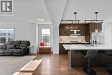 Discover the perfect blend of style, comfort, and luxury in this spectacular end-unit townhome perfectly positioned to capture beautiful green space views in the highly desirable community of Evanston. With 3 spacious bedrooms plus a versatile den, 2.5 bathrooms, a double attached garage, and high-end designer upgrades throughout, this home offers the ideal combination of elegance and practicality — all in impeccable condition. From the moment you arrive, you’ll be greeted by stunning curb appeal and a meticulously landscaped, enclosed front patio — a serene outdoor space that sets the tone for what’s inside. Step through the front door into a flexible main-level den, perfect for a home office, creative space, or playroom. This level also provides direct access to the double attached garage, ensuring comfort and convenience year-round. The main living area is open, bright, and beautifully designed to make the most of every inch. Expansive windows flood the space with natural light, highlighting the modern finishes and creating an inviting atmosphere that’s perfect for relaxing or entertaining. The living room flows seamlessly into a dining area and a chef-inspired kitchen that will take your breath away. The gourmet kitchen features custom full-height cabinetry, quartz countertops, a designer tile backsplash, stainless steel appliances, a corner pantry, and a large central island that’s perfect for hosting friends or preparing meals for your family. Whether you’re cooking a quick breakfast or entertaining guests, this kitchen delivers in both function and style. Off the living room, step onto your private balcony overlooking the lush green space — a peaceful retreat with no homes directly in front, offering a rare sense of privacy and tranquility. Upstairs, the primary suite is a true sanctuary, complete with a walk-in closet and a luxurious ensuite bathroom featuring contemporary fixtures and finishes. Two additional bedrooms provide plenty of space for family memb ers or guests, and a full main bathroom plus convenient upper-level laundry make daily living effortless. This home is loaded with premium upgrades, including central air conditioning, luxury vinyl plank flooring, modern lighting fixtures, and custom window coverings. Every detail has been thoughtfully curated to create a sophisticated, move-in-ready home that feels both stylish and comfortable. Evanston is one of Calgary’s most vibrant and family-friendly communities, known for its excellent schools, scenic parks, walking paths, and an abundance of nearby amenities. You’ll be just minutes from shopping centers, restaurants, coffee shops, and fitness facilities, with easy access to Stoney Trail and 14th Street NW for quick commutes anywhere in the city. (id:6769)