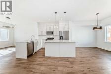 Ready to move-in/ 3-storey townhouse/ 3+1 bedrooms/ Double Garage attached/ Low maintenance fee. Welcome to this townhouse in Pine Creek, a development that offers a unique opportunity to own at a very competitive price and be part of Southwest in Calgary. Double garage attached on main level offers the ultimate convenience of direct access to your home. Right from the main level you get a full bedroom that could be used as the office. The second level comes with an open concept living with a kitchen tucked in the center to offer the needed separation for a living and dining area. The kitchen is a culinary delight, offering quartz countertops, stainless steel appliances, full-height cabinetry, a timeless tile backsplash, and a center island with an eating bar. This level also offers a sizable balcony equipped with BBQ gas line. The primary suite serves as a private retreat with a high ceiling, oversized window, spacious walk-in closet, and luxurious ensuite. Two additional bright bedrooms share a modern 4-piece main bathroom, while laundry facilities on the upper level add further convenience. Come and settle in the growing community of Pine Creek, short drive to grocery stores, shops, restuants, and other amenities anyone could need at Silverado shopping Center. Your life is convenient in Pine Creek with easy travel near and far through quick access to Calgary’s Ring Road and Macleod Trail, plus the Somerset / Bridlewood LRT station. Contact us today to schedule a viewing and experience the best of Pine Creek living. (id:6769)