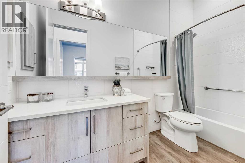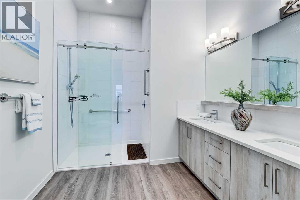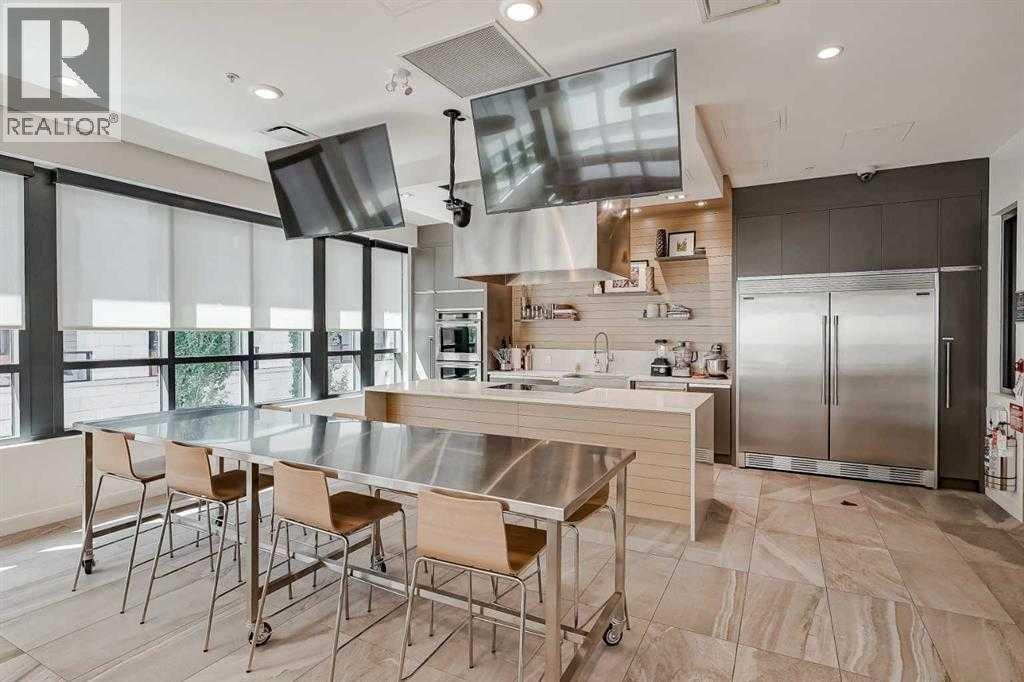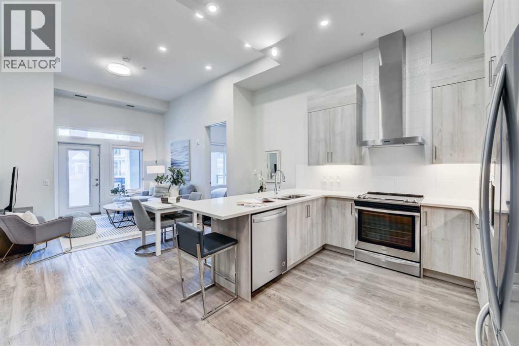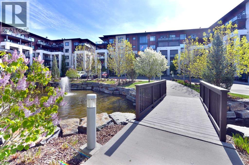 Discover the ultimate resort-style living in Westman Village, Calgary’s most sought-after lakeside community. Nestled in the exclusive 55+ building, this south-facing, nearly 1,000 sq. ft. ground floor home offers 2 bedrooms, 2 bathrooms, 2 TITLED parking stalls, soaring 12-foot ceilings, and a private exterior door for easy access for visitors or dog walks. This home offers an elevated lifestyle for those looking to downsize without compromise. The unit and building are wheelchair accessible with wide hallways & doorways. From the moment you enter this sun-soaked home, the soaring ceilings and bright, modern finishes create a warm and inviting atmosphere. The open-concept kitchen is beautifully designed with sleek cabinetry, quartz countertops, and high-end finishes, making it as functional as it is elegant. The spacious living and dining areas are ideal for entertaining or quiet evenings at home. The spacious primary bedroom can easily fit a king-sized bed. The large primary ensuite features a large walk-in shower and modern finishes, and the double closets offer ample storage. The second bedroom and bathroom are on the opposite side of the unit and provide the option for a den, media room or office space. A true standout feature of this home is the massive outdoor patio that offers 232 feet of additional living space and direct access for your visitors. For added convenience, this unit includes two storage spaces, one in the parking stall and a 6x6 storage unit with easy elevator access. The 40,000 sq. ft. Village Centre is connected via a +15, 2nd-floor indoor walkway with a party/social room, a billiards room, a fully equipped wood working shop, an art room, a golf simulator, a theatre, a fitness center, and more. The Village Centre includes Concierge services (7am to 11pm) and 24/7 security. If you're looking for a welcoming, low-maintenance, & upscale place to call home, this is your chance to experience the best in 55+ living! (id:6769)