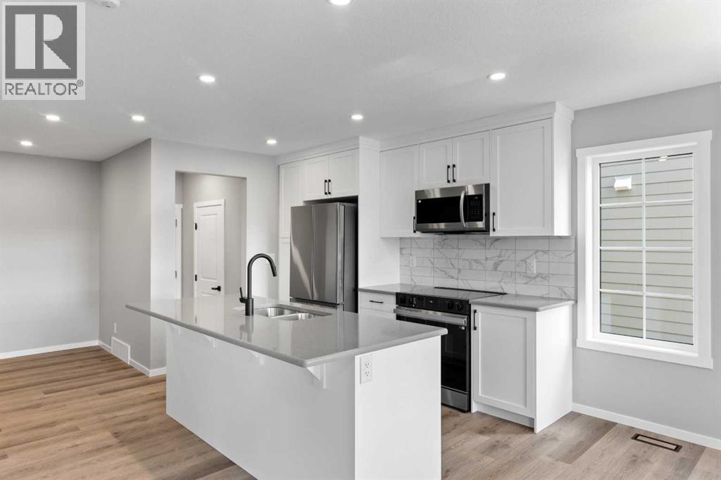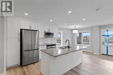Welcome to this NO CONDO FEE END UNIT TOWNHOME! Impressive curb appeal and a modern design blends with a highlyfunctional layout boasting 3 beds / 3 baths and over 1500 sq ft of finished living area. This home has also been highly upgraded throughout - raised kitchen cabinets with crown molding, upgraded luxury vinyl plank, quartz countertops, tiled bathroom walls, as well as many additional pot light fixtures. Upon entry the open concept is exemplified with an inviting Kitchen/Dining/Living space on the main floor. The kitchen is equipped with stainless steel appliances, full height kitchen cabinets, and loads of counter space and storage! There is also a cozy living room, a large pantry closet, a 2 piece bath and double attached garage. Upstairs, the primary bedroom is bright and spacious and has a private 4 piece ensuite with a large walk- in shower. The bonus room provides more privacy for the primary bedroom from the other 2 bedrooms upstairs. There is also a full laundry room and a 4 piece bath that completes the upstairs. The lower level is bright and has a 3 piece bathroom rough-in that is perfect for a future bathroom. This amazing home is also conveniently located minutes away from the Somerset LRT STATION, large Commercial Centers that include IKEA, T & T Asian Market, the Tsuut'ina Costco, the South Health Campus Hospital and has quick access to highways. This is the perfect home for you. Book your showings today! (id:6769)