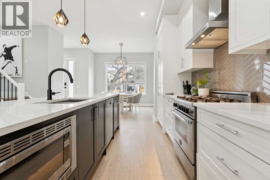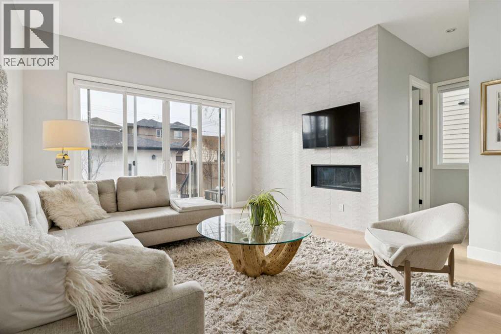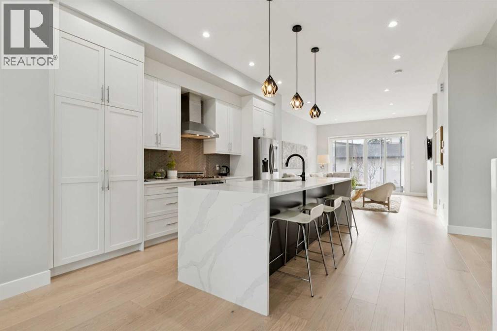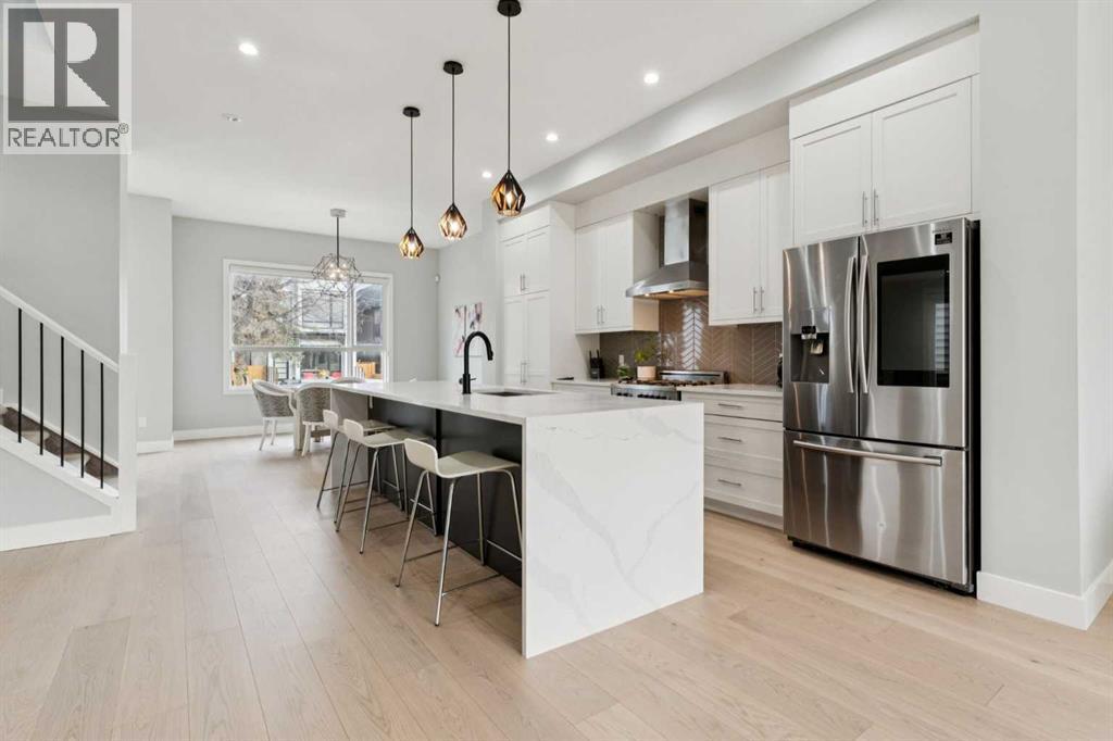 This sophisticated, contemporary semi-detached infill in Capitol Hill offers exceptional value with over 2,700 square feet of functional living space featuring 4 bedrooms, 3 and half bathrooms, premium finishes, and a south facing yard. The main floor boasts brand new engineered wide plank oak hardwood flooring, ten-foot ceilings, and generously proportioned living areas. These include a formal dining room, a living room with a sliding glass door to the rear yard, and a modern kitchen equipped with stainless steel appliances and shaker-style cabinetry. A tiled mudroom provides direct access to the double detached garage and includes built-in millwork for organized storage. A privately situated powder room completes this wonderful main floor. The upper level comprises three spacious bedrooms, two full bathrooms, and convenient second-floor laundry. The master suite features a sizable walk-in closet and a private five-piece ensuite with a freestanding soaker tub, a separate water closet, and an oversized glass shower. The fully finished basement includes a large recreation room with a wet bar, a fourth bedroom, and a fourth bathroom. Finally, the home is complete with air conditioning, charming landscaping, a very useful at-grade concrete patio, and irrigation. Book your private tour today. (id:6769)