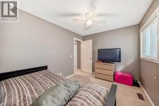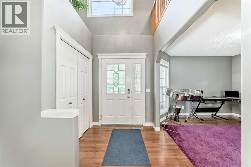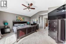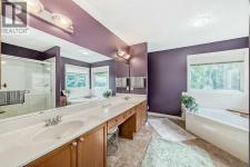 Welcome to this large family home sitting on a walkout lot with views of the Rocky Mountains! Just under 3000 total sq ft with a fully finished walkout basement. The main floor is wide open with upgraded kitchen cabinets and gleaming granite countertops. There is hardwood floors through to the kitchen, dining room & home office/den. The centre island is massive with dual undermount sinks and extra storage. There is plenty of cabinets and drawers plus a large corner pantry! Overlooking the front of the house is an oversized home office or den area~ perfect flex area for whatever you need. The garage is drywalled, insulated and heated. Upstairs you will love the custom wood railings and the huge Bonus room~ amazing entertainment space will hold any sized furniture. The Primary Bedroom has vaulted ceilings, a large walkin closet, a nice mountain view and an incredible 5 pce luxurious ensuite boasting dual sinks in the vanity, granite countertops, a deep corner soaker tub, a cozy stand up shower with corner seat and tiled floors. The two spare bedrooms are a good size (one has a handy walkin closet) and they can share the main 4 pce bathroom. The walkout level is fully finished with tiled flooring, knockdown ceiling with recessed lighting and large windows. There is a corner wet bar with upper & lower cabinets. The living room has a gas fireplace for extra comfort. There is one huge bedroom (the 4th one) and a large den (no closet but does have a stand up armoir & a big window). The basement has a full 4 pce bathroom as well. There is a good sized brick patio at the walkout entrance, a stone sidewalk comes from the front for easy access to the back. The private west facing backyard is a good size. The home has central AC, builtin vacuflo and can include the two spare fridges and the stand up freezer too. This is a great family for a large extended family. Easy walk to the Crestmont Community centre. Quick drive to get to the 16th Ave, Stoney Tr and downtown. (id:6769)