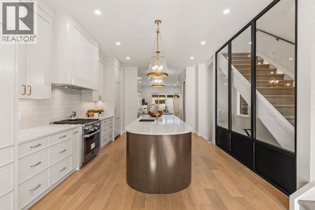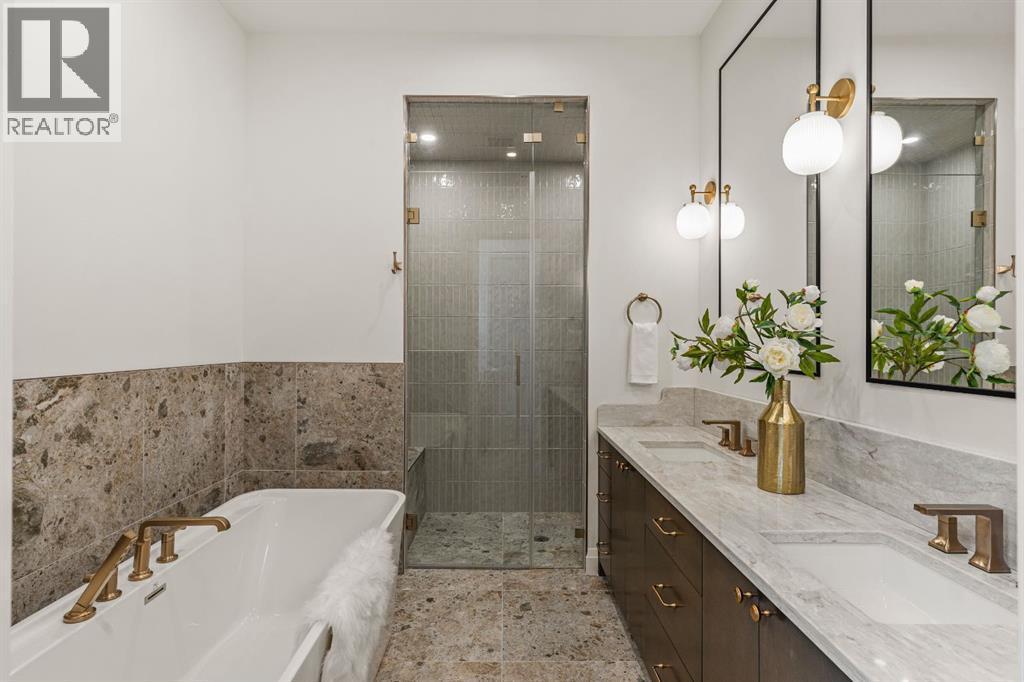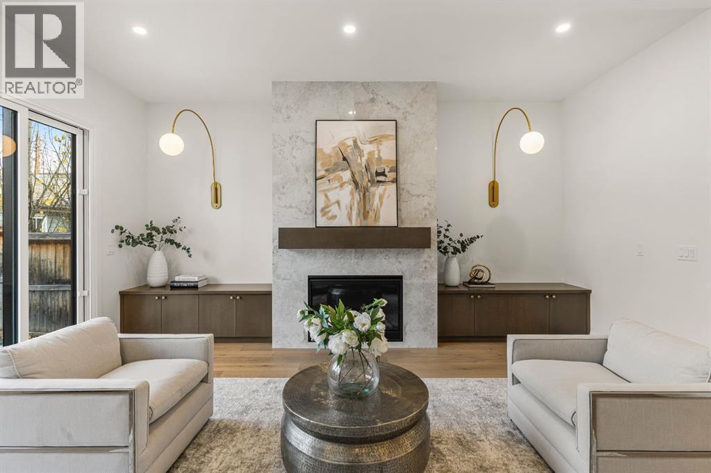 Welcome to The Vega — a beautifully crafted home by Cedar Rock Homes, set on one of Briar Hill’s most desirable streets. This four-bedroom, 3.5-bath residence offers over 3,200 sq ft of developed living space on an oversized 130-foot-deep lot. Architectural elegance meets thoughtful functionality and elevated finishes to create a space that feels both sophisticated and comfortable.Step inside to soaring 10-foot ceilings, wide-plank white oak floors, and natural light that fills every corner. The open-concept main floor flows seamlessly from the chef’s kitchen — complete with custom millwork and a full Miele appliance package — to the inviting living area anchored by a sleek gas fireplace and full dining space perfect for family gatherings and entertaining.With vaulted 10-foot ceilings on the upper floor, the primary suite feels like a private retreat, featuring heated floors, a curbless steam shower, freestanding tub, and dual walk-in closets. Two additional bedrooms — each with walk-in closets — share a spacious five-piece bath, while a pocket office provides a quiet spot to work or study.The lower level offers room to live and play, with a large family area, wet bar, home gym, fourth bedroom, full bathroom, and roughed in infloor heating — ideal for guests or extended family.Outside, enjoy quiet evenings in your private yard or coffee on the front courtyard patio. With a double detached fully insulated, drywalled and painted garage, smart-home wiring, and high-efficiency mechanicals, every detail has been designed for lasting comfort and performance.Nestled in Briar Hill, one of Calgary’s premier inner-city communities, you’re just minutes from Kensington, Foothills Hospital, the University of Calgary, and some of the city’s best parks and schools.The Vega — modern living, perfectly grounded in a classic Calgary neighbourhood. Book your private showing today! (id:6769)