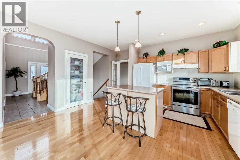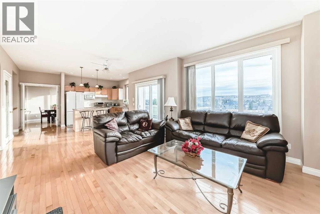 Welcome to this beautiful 2-storey home offering over 3,400 sq.ft. of developed living space, perfectly positioned to capture unobstructed ridge views and natural light in its sunny southwest backyard.This home features timeless design and modern comfort. The main floor welcomes you with an open-to-above foyer filled with natural light, showcasing a beautiful spiral staircase. The front of the home features a great room and a formal dining room that flows seamlessly into the kitchen. The adjoining living room overlooks a phenomenal view of the ridge. Snuggle up by the fireplace during cold winter nights or enjoy the sunset from the large balcony.Upstairs you’ll find three generous bedrooms, including a bright primary suite  a walk-in closet, and a private ensuite. Two additional bedrooms and a full bath complete the upper level. The upper level den offers versatility for the new owners. It would make a perfect home office, playroom, library, or home studio - use your imagination! The fully finished walk-out basement 1,157 sqft of living space to this home. The large rec room is flooded with natural light form the large windows. You will find a 4th bedroom and a full bathroom on this lower level, making a great space for in-laws or house guests. Enjoy summer evenings on the back deck overlooking the quiet green space—no neighbours behind—and take in Calgary’s famous sunsets from your private backyard retreat. The double attached garage provides plenty of space for vehicles and storage. NOTABLE MENTIONS: New roof (2025) | New stove (2023) | New washer & dryer (2023) | New hot water tank (2024) | |Located in a family-friendly community with easy access to Stoney Trail, Country Hills Blvd, and Harvest Hills Blvd, this home makes commuting simple. You’re minutes from grocery stores, coffee shops, restaurants, fitness centres, and top-rated schools, plus scenic walking paths and parks right at your doorstep. With its unbeatable location, functional layout, and incredible views, this ridge-side home is the perfect combination of comfort, space, and convenience—a true gem in northwest Calgary. (id:6769)
