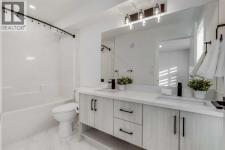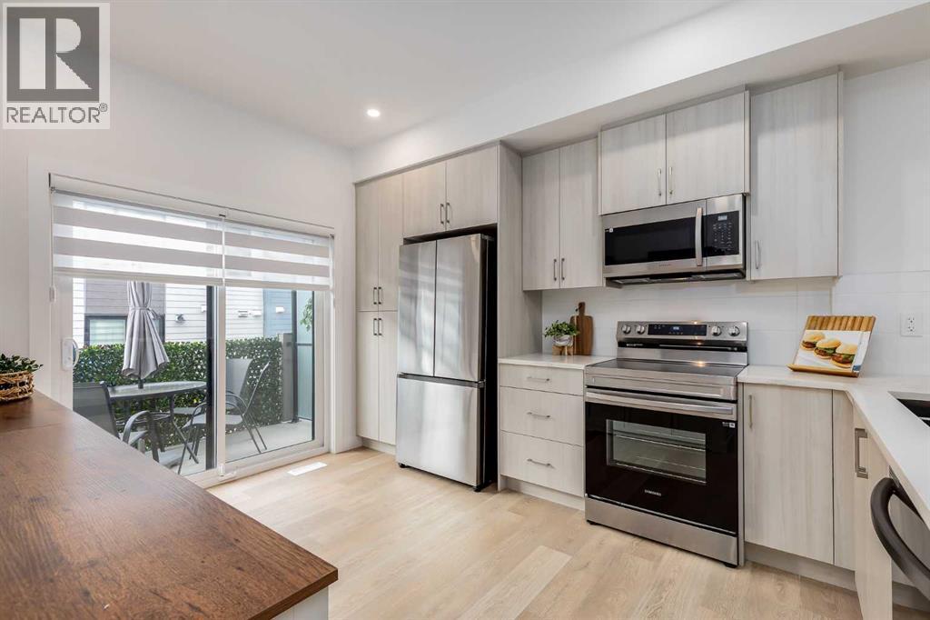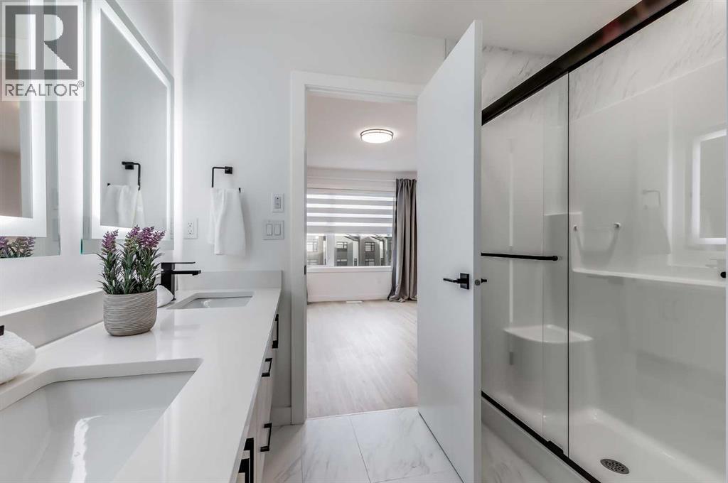 Nestled in the desirable lake community of Mahogany, this 2024-built three-storey townhouse by Mountain Pacific Homes combines modern design, high-end finishes, and functional living spaces. With over 1,500 square feet and lake access, this home offers comfort, convenience, and a vibrant lifestyle.The main level is designed for both everyday living and entertaining. Sunlight fills the open-concept kitchen, dining, and living areas, highlighted by sleek luxury vinyl plank flooring and 9-foot ceilings. The kitchen at the heart of the home features quartz countertops, upgraded stainless steel appliances, ample storage, and a breakfast bar for casual meals. A balcony just off the kitchen provides a perfect spot for morning coffee or evening relaxation. The dining area flows naturally into the living room, creating a seamless space for gatherings, and a conveniently located two-piece powder room completes this level. Upstairs, comfort and privacy take center stage. Both primary bedrooms feature walk-in closets and ensuite bathrooms, each with dual sinks for added convenience. One ensuite showcases a spa-inspired five-piece layout with an oversized shower and built-in bench, while the other offers a stylish and well-appointed four-piece design. Vinyl plank flooring continues throughout, and an upstairs laundry area adds practical convenience. The entry-level floor is designed with both functionality and flexibility in mind. A tandem garage with built-in shelving provides abundant storage, and part of the space could easily be adapted into a home gym or hobby area. The storage and utility room adds convenience, and direct access to the backyard makes moving between indoor and outdoor spaces effortless. Step outside to a private retreat in the fully fenced backyard, featuring a concrete patio and privacy glass. Modern features include air conditioning, automated blinds, a high-efficiency furnace, and a 50-gallon electric hot water tank, while durable construction with engin eered floor joists, 30-year architectural shingles, R42 attic insulation, Hardie Board siding, and aluminum soffits ensures long-term peace of mind. As a new build, the home includes warranty coverage, smart home features, electronic blinds, and the option to purchase an extra outdoor parking stall. There is no waiting for possession, ongoing construction, or additional costs for landscaping, fencing, or window treatments because everything is already complete. Residents enjoy a vibrant lakeside lifestyle, with a 15-minute walk to Mahogany Beach Club, sandy beaches, a non-motorized marina, swimming, paddleboarding, kayaking, fishing, and year-round recreational activities. West and Central Beaches feature sports courts, playgrounds, picnic areas, and fire pits, while the community’s wetlands are nearby. Local amenities include Mahogany Village Market, Westman Village, restaurants, Seton YMCA, Calgary Public Library, and schools. Easy access to 52nd Avenue and Stoney Trail ensures simple commuting. (id:6769)