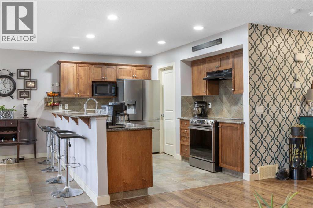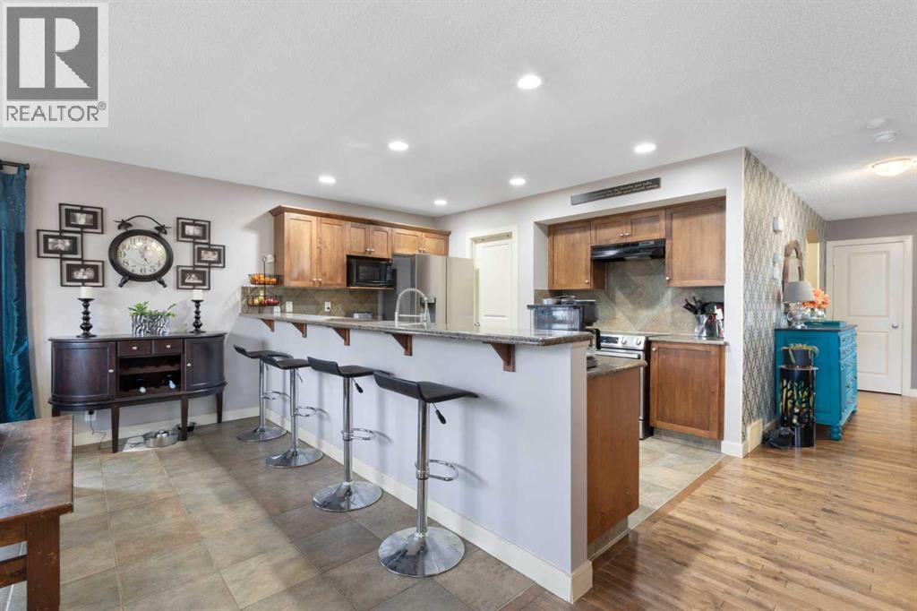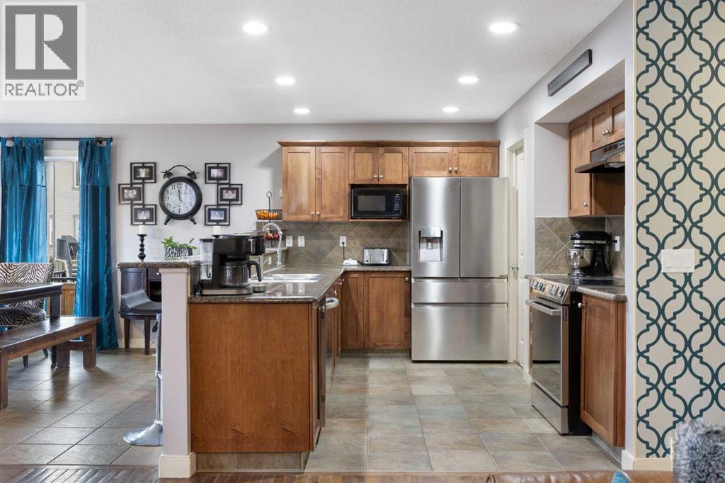 Discover this charming 5-bedroom family home, a perfect blend of character, style, and warmth. Not your typical white-walled house, it exudes personality with moody tones and unique details that make it stand out. Boasting almost 2,200 sqft above grade, this spacious residence offers plenty of room for the whole family. The beautifully appointed kitchen seamlessly connects to the dining and living areas, creating an ideal space for gatherings. Featuring 3.5 bathrooms, there's comfort and convenience throughout. The fantastic backyard backs onto a serene green space, providing a private outdoor retreat. Located in a family-friendly neighbourhood, this home is within walking distance of a school, a strip mall, and shopping, and offers easy access to the main road in Okotoks. Original owners have cared for this special property—schedule your viewing today! (id:6769)